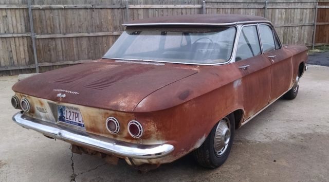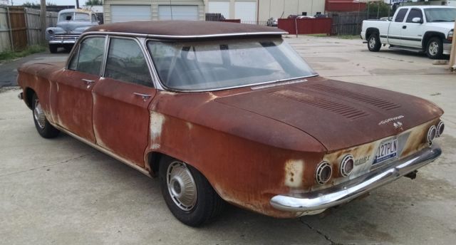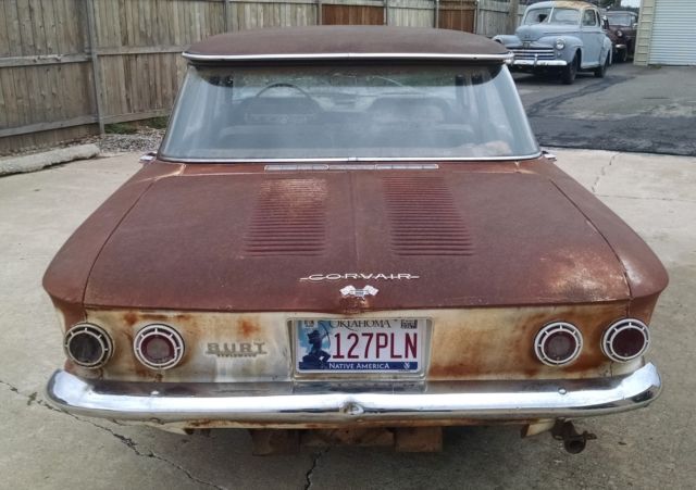 | Selling my 1962 Corvair Monza 900. Looks rusty but it is mostly all surface rust! Great to restore or a perfect parts car. Not a lot of rust through. Is complete and uncut with lots of nice parts. I didn't try to start the car but it had oil in it and I put a battery in it and it spins over easily. It has sat for many years, but certainly can be brought back. It was running and driving when parked. It is a 4 speed and has the bigger 110 HP engine. I put 4 brand new tires on the car for when I got it running and so it would roll and transport easily. Please look at the pictures and if you have questions call or email me. I have a clear title in my name and ready to go. Too many projects and I wont get to it any time soon. I need $200.00 deposit within 24 hours pay pal on deposit only and the balance in cash before release of the car and title. Buyer responsible for any shipping, I will help load. Car is listed locally and I reserve the right to end the auction at my discretion. Bid to buy as there is no reserve! Thanks for looking! Ron |