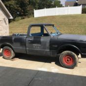 I have a 1968 C10 that just can't seam to find the time for. There is countless hours put into this and $6,000 + in parts years ago. Most of the work done is the body. Here is the rundown - Bed is in perfect shape and is currently primed. This bed is new to the truck and was completely sandblasted and primed before on the truck - New roofs are grafted together to chop exactly 3''. It was done in a way that stock windshield (-3'') could be used. -Doors were stripped and are free of rust. POR15 poured in the inside to prevent future rust -Rockers, inside rockers, doglegs are all new. -Rusted frame members under cab replaced -New front fenders -Engine compartment has a ton of work and looks awesome. Inner fenders replaced and major firewall work done to remove rust. -tailgate and possible a hood are the only things needed to bring to the paint shop. -Gaps around the doors are near perfect, minimal body work needed on entire truck This is a great truck with minimal to no rust since everything has been replaced. It has satin a garagefor a few years so it is dusty with a few surfacerust spots.I just put on breaks and lines so that I could drive it in and out of the garage. It does start and runs fine after it warms up but a tune up is desperately needed. I did replace the starter, fuel pump, battery,and a couple other odds and ends.If you are taking this to completion I would imagine you would pull or swap the current V8 anyway. |