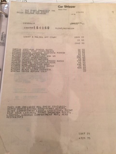 | 1970 Chevelle SS 454 L.S.-6 unrestored original, 50% original paint, full documentation. Flint, MI car, 20,964 original miles. Rare cloth bench seat, AM-FM 8 track, 4.10 Rear End, Automatic/Column. Autumn Gold, Black Vinyl Top. Registered in the L.S.-6 Registry. Protecto Plate, Bill ofSale, Transit Slip, Delivery Slip, and more. |
