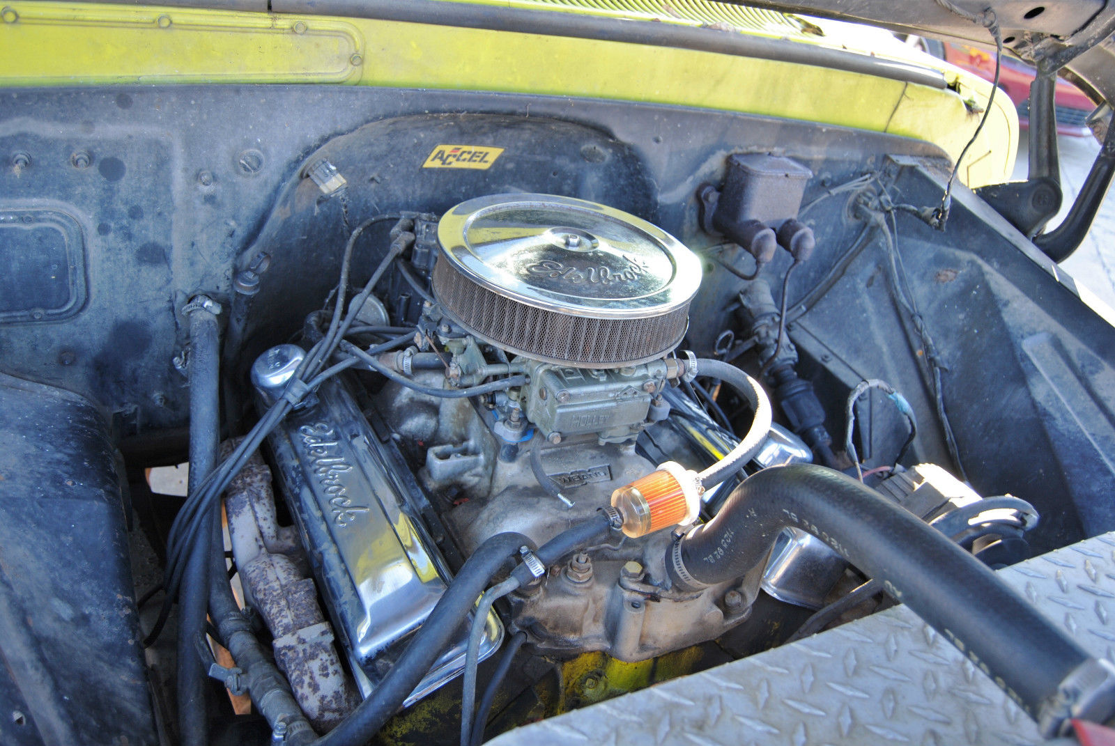 | For sale is a 1962 Chevrolet C-10 kneeknocker cab with an automatic trans and 327 V8. Truck starts right up. shifts great. brakes works and is an extremely good start to a project. This truck mostly lacks the looks. has a little paint coming up on lower rockers from bondo/slight rust from the previous paint. Very clean interior and you could drive this truck everyday with a good set of tires. Truck fires up on first crank even after sitting for days. Call Robert @ 479-422-foursix0seven to make a deal. Title in hand. |