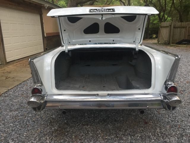 Chevrolet Bel Air 1957 2 Door Hardtop 28, 3 Speed Original Survivor! Engine block / Trans / RearORIGINAL #s MATCH This car was purchased a few years ago from a gentleman who was the first family owners.Odometer reads 70K; we were told by previousowner that that was original miles on body,but we have no way of authenticating it! Car was repainted and new custom interior was installed at time of restoration. Has awesome Tilt Steering Wheel...... Nice set of Date Correct (Re-Pop) wheels with brand new tires. Does NOT have posi traction.Dual exhaust. Has always beenmaintained and taken care of!Car starts right up!Engine runs well and transmission shifts great!Recent 15K In Work With All Documents. Also new brake lines and more. Please take the time to look at allphotos carefully.This Is An AMAZING CLEAN California Chevy !!Undercarriage Is Amazing & Original. Car is a niceoriginal, survivor! THESE 57s ARE BECOMING QUITE COLLECTABLE AND SOUGHT AFTER! DON'T MISS YOUR CHANCE! Please take the time to look at ALL photos carefully!! |