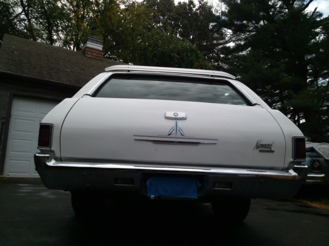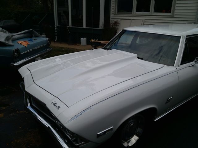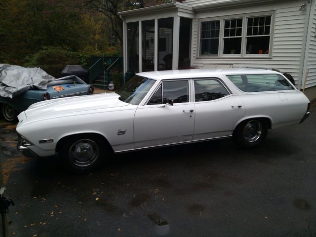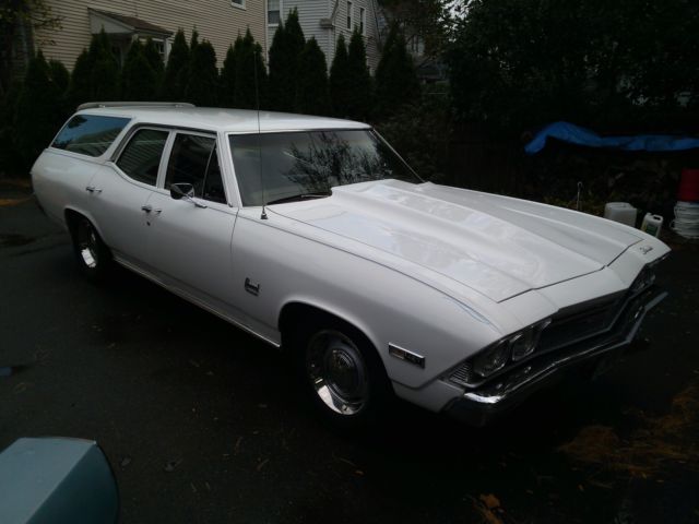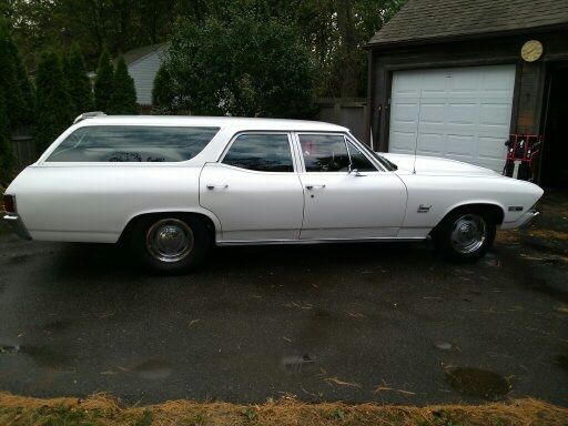 1968 Chevelle 300 Nomad Wagon - 468 cubic inch engine - MSD ignition - Holley carb - Weiand aluminum hi-rise - electric fuel pump - coated big tube headers - flowmaster mufflers - 3 1/2"pipes thatempty out in front of the rear wheels - Turbo 400 Trans with manual shift valve body - B&M shifter - 12 bolt posi rear - front disc brakes - this car originally had a 350 c.i. auto trans with A/C - I have the A/C compressor but I do not have the firewall A/C box - the car was painted white approx 10 years ago - original color looks like it was was palomino ivory - it has a few bubbles at the bottoms of the doors - the rear quarters have had some sheet metal and filler work - some bubbles there, see pictures- the rear spoiler is original to the car - it has rallye wheels with trim rings - new cowl hood - I had the pin striping done last year - I have the original hood but it has a hole cut in it for the air filter and has a plastic scoop on it - the interior is very good - carpet is very good -the front seat was recovered - the door panels, headliner and rear seat are original and in very good condition - I do not have the radio - The gas gage does not work - it has aftermarket oil pressure and water temp gages - all of the lights, brake lightsand turn signals work - the wipers work- horn works - the rear window is electric and it goes up and down with no problem - the glass is all factory tinted -this car runs great - it is fast, fun and loud - it's a head turner at cruise nights and car shows - if you have any questions please email me - I will respond within 24 hours - I have this car for sale locally and in other publications. I reserve the right to cancel this listing if a reasonable offer is made through the other listings.