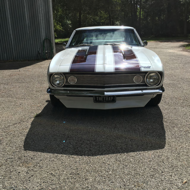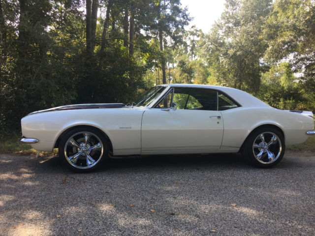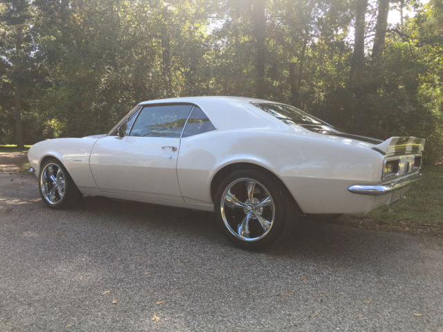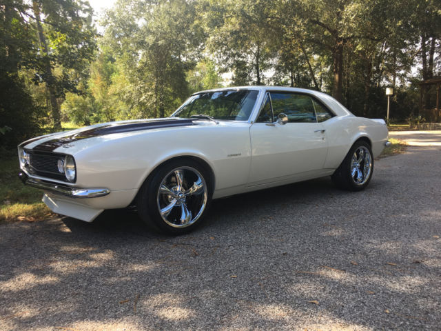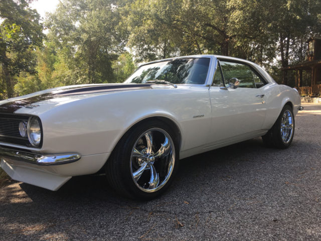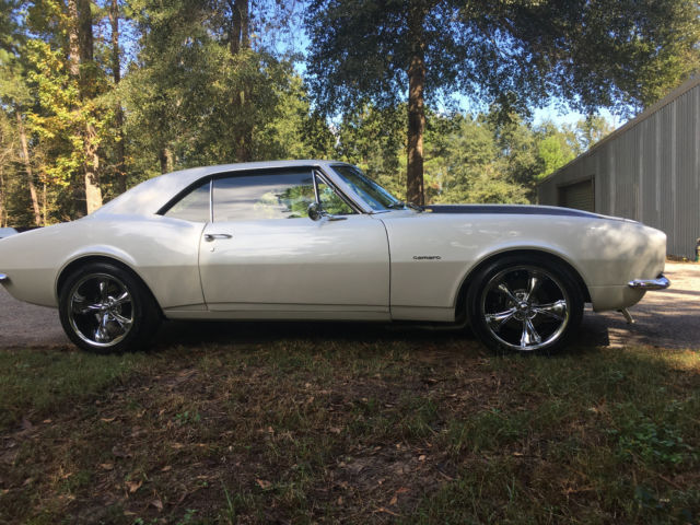 1967 Camaro RS with laser straight body,original console floor shift car, zero rust, 1160 miles since built, pearl white custom paint, custom wood grain hydrodipped interior, GM 454 crate motor with 425 HP, cold Vintage Air A/C, Hotchkis stage ll kit complete front and rear suspension with frame connectors and sway bars, 4 wheel Wilwood disc brakes with 6 piston front and 4 piston rear, complete Dynamat sound proof through out, Painless wiring harness front to rear, March puly system, Ridler 18" wheels with Nitto tires 18x8 front and 18x9.5 rear, I DID IT chrome tilt steering column, Dakota Digital gauges and dash, Hooker headers with Flowmasters, 12 bolt posi 355, 700 R4 transmission, Sony bluetooth with JL Audio speakers and amp, dual Optima batteries, Stainless steel fuel tank and lines, and more. This is a custom professional shop built car with over $50K spent, as you can see nothing but Quality!!!!! this car is for sale locally and I reserve the right to end this auction at any time. any questions call 713-553-7744 I have Clear Texas title in my name. $1,000.00 deposit due at end of auction. thanks