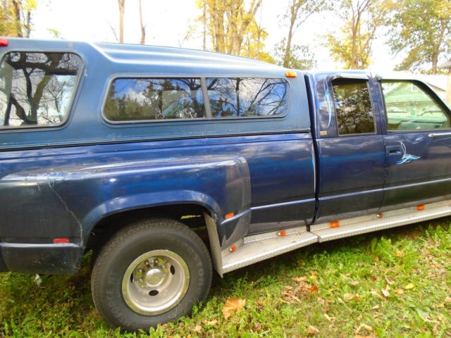 | 1993 chevy ext. cab 1 ton dually c3500 camper top, rebuilt transmission by mr. transmission 2 months ago 4 speed automatic 350 fresh tune up trailer hitch bucket seats with console c/d player new hydro booster & master cylinder |
