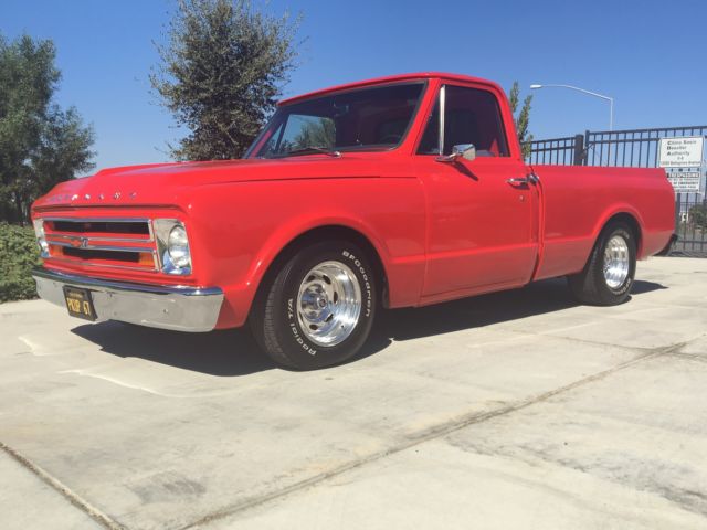 | hello you are looking at a 1967 Chevy short bed pickup c-10 it has a crate 350 motor low miles seance done and a 4 speed automatic Trannsmission. All new 4 wheel disc brakes, new tilt steering colume. New wood bed.. Bunch of new parts to much to list any questions please email..The reason for the sale is I'm getting married n 8 months and it's expensive lol. TheToys got to go.Good luck and thanks for looking.Buyer responsible for the shipping.. |
