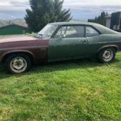 | 1970 Chevy Nova. LS1 swap drive train out of 2000 Chevy Camaro runs great. 3:73 gears, pin on cowl hood, paint isn't the greatest drivers side floor pans has been replaced. trunk has a little work done nothing real bad. one thing I don't like the whole gas tank is in the trunk from theCamaro swap. its a great vehicle to start with just need a little tlc. sold as is any questions feel free to call (614)332-1545 |