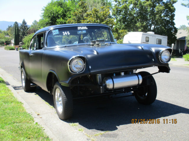 1957 2 door hardtop BelAir Chevrolet straight axel gasser.