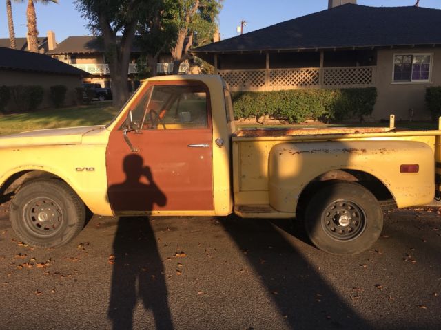 1969 Chevy C10 Stepside for sale Selling my 69, original Arizona truck that was used my ADOT, one owner after that. originally colored orange as it was used by the city and last owner painted it yellow. 3 on the tree with a small block 350 engine originally a inline 6 but last owner changed it back in the 70s. originaltranmission. original truck not much has been done but the engine swap. minimal rust for being 40 plus years old. runs and drives great and turns on overtime you turn the key! anything i missed please feel free to message me. thank you! |