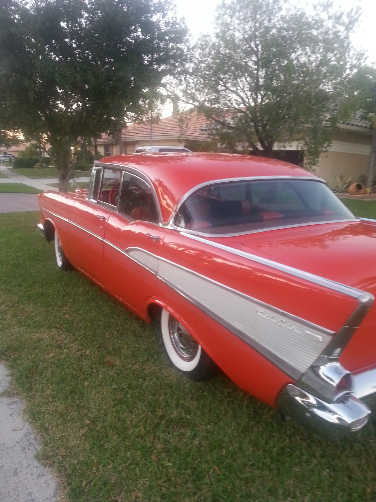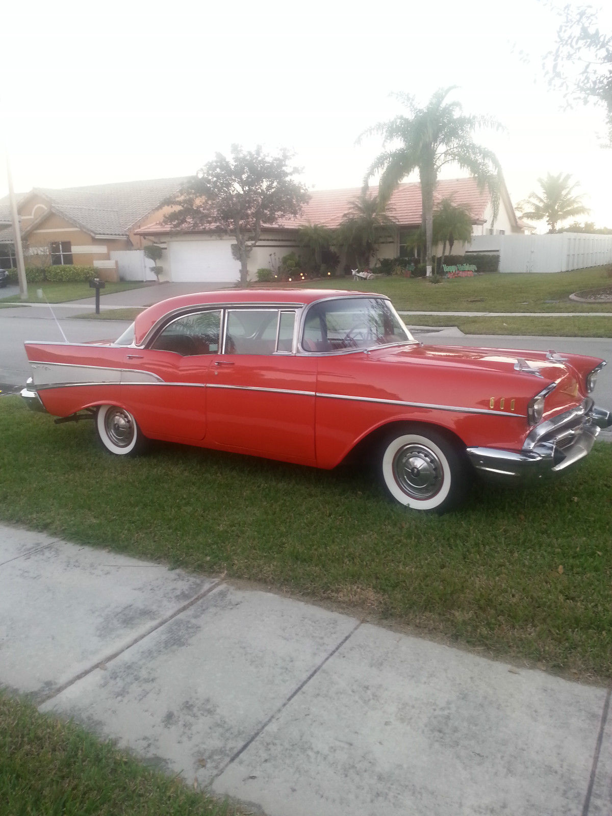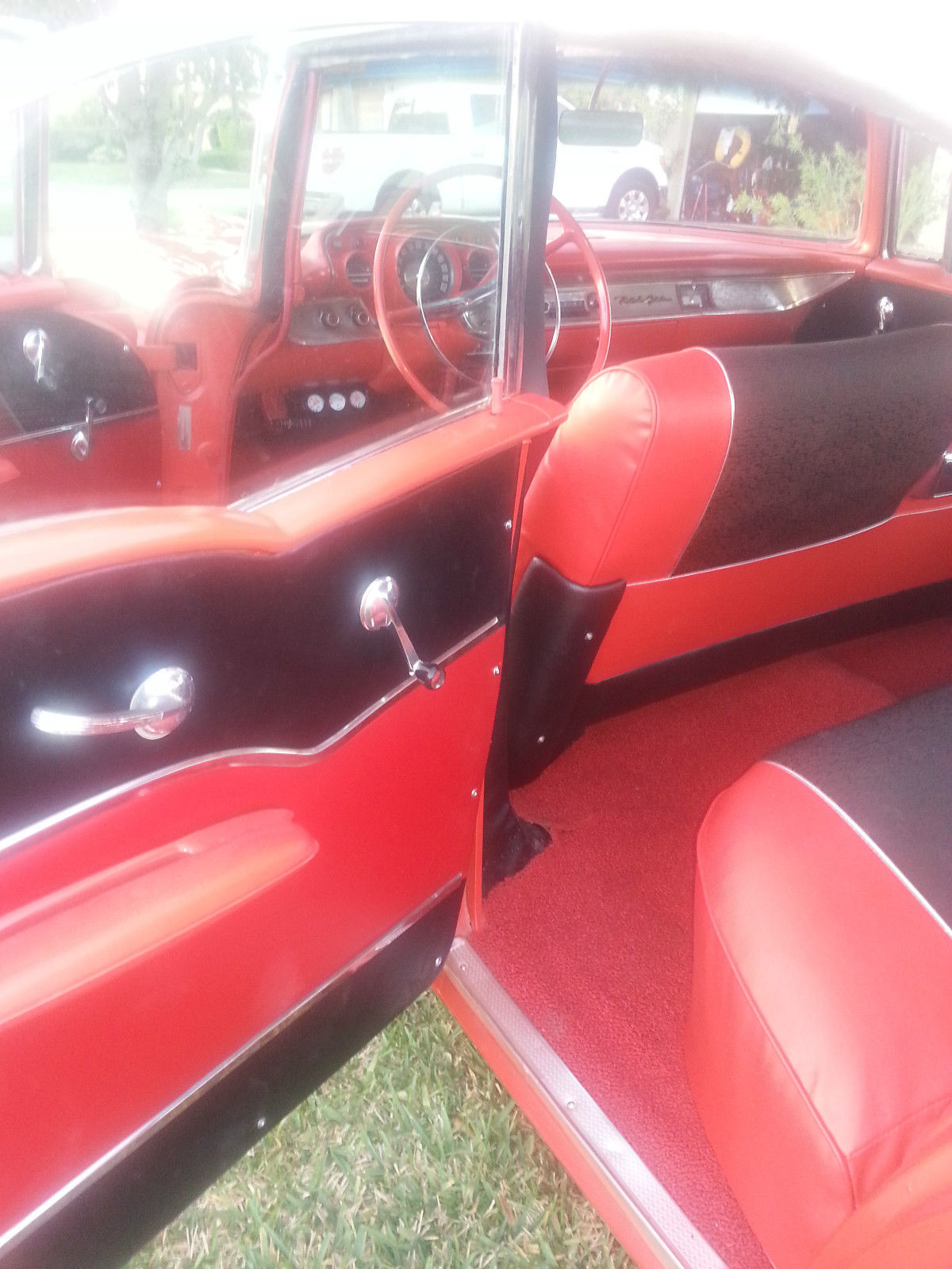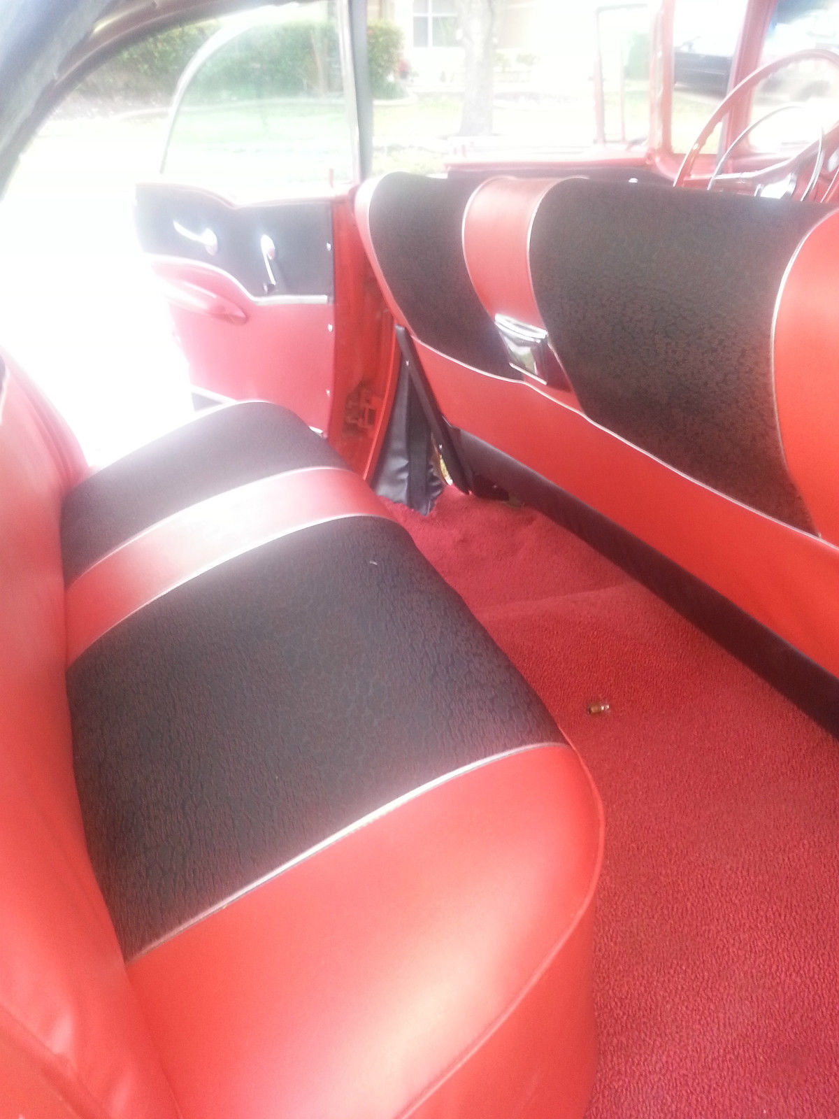 | 1957 Chevrolet Belair Sports Sedan 4 door No Post Original V8 283cu 2 speed Powerglide transmissionAll glass has been replaced and regulators. New front and rear bumpers. Original Chrome moldings. Newly Painted 1957 Matador Red. original engine was just rebuilt and has about 80 miles on it. Original four barrel carburetor also rebuilt. Interior is completed redone and foam. New dual exhaust New tires factory reproduction coker 3&1/2 inch whitewall radial tires with original hubcapsNew chrome truck antenna. new floor pans and trunk metal replaced. runs great. sounds great. drives nice and straight. reserve right to sell locally. will consider partial trade for classic chevy truck or car. |
