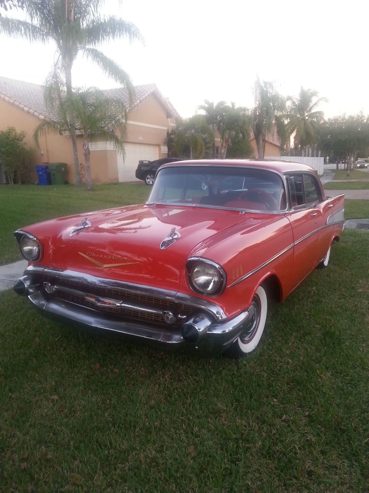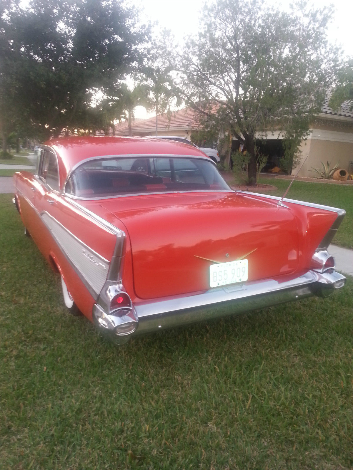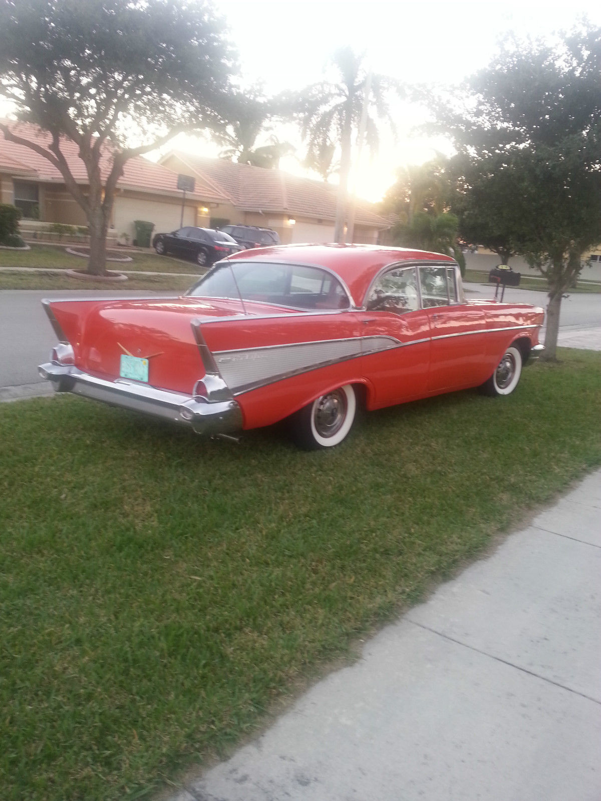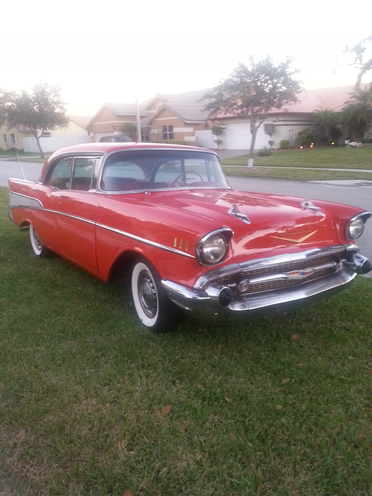 | 1957 Chevrolet Belair Sports Sedan 4 door No Post Original V8 283cu 2 speed Powerglide transmissionAll glass has been replaced and regulators. New front and rear bumpers. Original Chrome moldings. Newly Painted 1957 Matador Red. original engine was just rebuilt and has about 80 miles on it. Original four barrel carburetor also rebuilt. Interior is completed redone and foam. New dual exhaust New tires factory reproduction coker 3&1/2 inch whitewall radial tires with original hubcapsNew chrome truck antenna. new floor pans and trunk metal replaced. runs great. sounds great. drives nice and straight. reserve right to sell locally. will consider partial trade for classic chevy truck or car. |