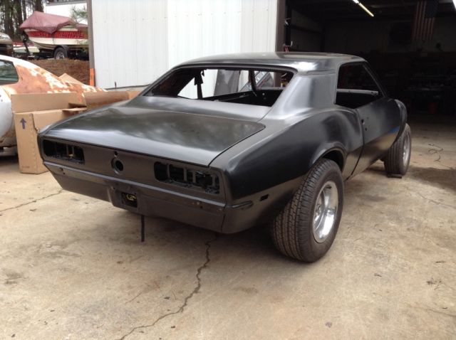 This is an original V-8 4-speed 1968 Chevrolet Camaro Sport Coupe, LeMans Blue with a Black interior. The car has had all new metal installed, new full floors, quarter panels, roof skin, wheel wells, trunk floor, tail panel, firewall and cowling. The car is ready for final bodywork and paint. The customer lost interest in the car, he had invested over $12,000 in the work. This car has a clear Georgia title, go figure an old car in Georgia that has a title instead of a bill of sale. Wheels and tires are not included in the sale, rollers will be provided. Remaining top-quality body panels and trim can be purchased through us at a discount from AMD Any questions please feel Free to email me or text me at 404-735-7993 To answer some of the questions that I have received here is a what I have, I have the dash cluster, steering column, 4-speed pedals, window regulators, quarter glass, heater box, front and rear bumpers and some interior trim for the car. Yes, both doors are new as well as the door hinges and trunk lid. The floor is new from the firewall to the tail panel and both rear frames and the crossmembers. All the hard work has been professionally done on this car, it is ready to bolt on the front clip and go to final body work and paint. Yes the dash and rear body wiring harnesses are included. The deposit is non-refundable and must be made within 48 hours of auction close. This car is for sale locally and I reserve the right to end the auction at any time. There is no warranty expressed or implied. Please look at the pictures, I have described the car to the best of my abilities, any questions, please ask them, thank you. This vehicle must be picked up within seven days of auction end unless otherwise agreed to, thank you