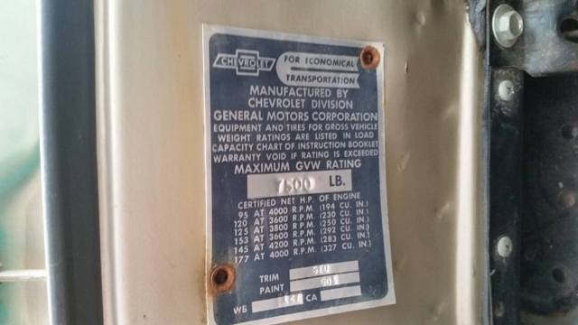 Reserve is LOW!!!For Sale is a clean 1966 Farm Truck Right from Montana It was a two owner truck before I picked it up and is almost all original. Its a Factory 327 4 speed 4 Barrel Is the perfect start to a hotrod or ratrod. But is perfectly capable of being driven as it is. It has the original seat, and original wood in the bed (rotted)Has some rust holes on lower fenders! Odometer Reads 25,000 Miles Have a Clean Montana Title Hop in and drive this truck anywhere. The patina on it is not found on trucks around here. Call or text is the best way to get ahold of me! DRIVE IT HOME!! PRICE IS FIRM!! 6038012922 |