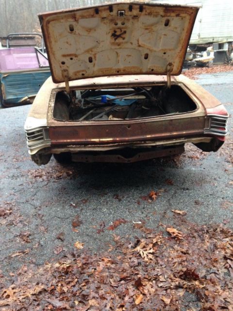 | 67 chevelle project ss doors are soild fenders driver side has some damage may could be repaired around the windows are nice roof is good qrarters need bottom patches needs all floor pans and trunk pan and tail pan has 10 bolt rearend it was a ac car automatic some of the ac firewall parts are there and the under dash ac parts are there and controls etc soild frame its not broke at front from the big block torqe .I can help load 400.00 deposit with in 48 hours no exceptions ask your wife or mother or girlfriend before you bid it cost me money to list this please be straight up thanks |