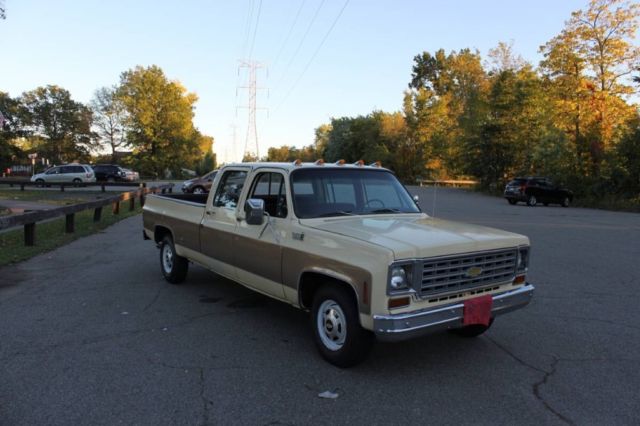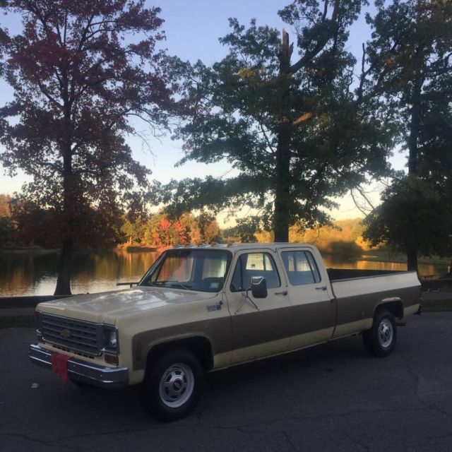 1976 Chevy 2wd c20 custom deluxe 3+3 crew cab long bed. 454 big block with factory 4 speed. Power steering, power brakes, A/C. Many new parts including starter, brake booster,AC compressor, tires. Truck runs and drives beautiful. Interior is mint minus 2 cracks in dash. Floors are solid, passenger rocker has one small rust hole. Heat blows hot, AC blows cold. Has working pioneer head unit. Exterior is a 8 out of 10. Has some nicks, dings and rust starting to bubble but nothing major. Frame is spotless. Can send many more pictures upon request just message me.