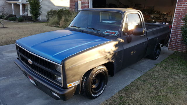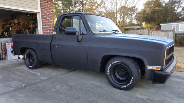 1981 Silverado. 305/TH350. I was building this truck to keep but lately it bothers my knee when I drive it. It has also become a problem because all 3 of the kids want to ride whenever I go somewhere. I bought a CJ7 project so we can all fit and now this needs to find a new owner. I replaced the rockers, outer floors, and 1 cab corner. I used CPP 2"spindles and 2" springs in the front and used a flip kit with a "C" notch in the rear. It has flowmaster dual exhaust with new chrome tips. The bumper, mirrors and wheels were painted using plast-dip so it can be removed if you don't like black. I have done metal work on the truck but it still needs some bodywork before paint. I did not want to cover anything since I wasn't completely finishing and painting the truck. This is a list of new parts I have installed: -carburetor(600cfm electric choke Edelbrock) -intake(Edelbrock Performer) -fuel pump and fuel tank -master cylinder, front brake lines, calipers, pads, rotors, rear rubber hose, rear hard lines, and wheel cylinders -rear transmission seal,pinion seal, speedometer housing, differential service with new gasket, trans pan gasket, trans dipstick rubber gasket -dome, cargo, parking, tail, and side marker lights -carpet, all door trim -front air deflector -new tires 295/50/15 rear 245/60/15 front -rear bumper -Pioneer bluetooth stereo w/handsfree microphone, rear 10" Kicker sub, Boss amplifier, Cerwin Vega 4X10 corner speakers, JL Audio 3 1/2 dash speakers -battery tray and yellow top Optima battery I have more pictures on request and there will be 2 links to videos of the truck Please call me at 910-330-2535/Brian with question or to come see the truck. Thanks for looking