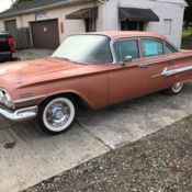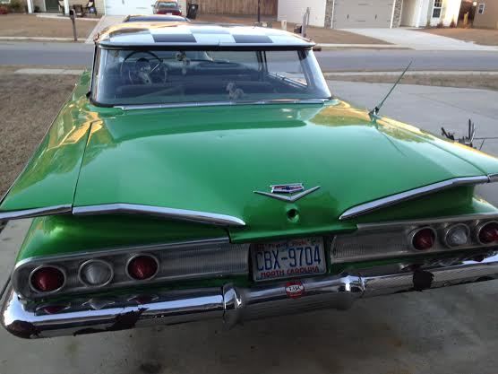 | 1960 Impala. Recent paint job. Has a 283 engine with a almost new 650 CFM edelbrock carburetor and a 350 turbo transmission. The trans is slipping in first and second gear so it will need some work. Bought this car to restore and didn't have time. Most of the interior and trim has been taken off due to it being painted. It runs but does not have keys. It has a clear title. It has rust in the typical areas as it is over 50 years old. All of the interior and moldings are with the vehicle. just not currently installed. Still has original paint and trim tag. Mileage says 11381 but I would assume that it has rolled over. |