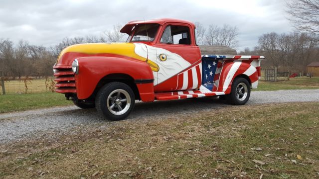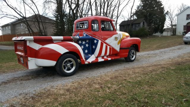 1951 chevy truck original frame fuel injection heads,comp cam,aluminium intak, 600 holly,411 rear end 350 turbo automatic shift kit no power steering no power brakes front disc brakes rear drum brakes headders and flow master patriotic airbrush paint job new rims and tires custom fiberglass topper for bed I have owned this truck for 20 yrs been in florida for most of its life only reason for selling the truck I started a new project and it has to go to a new home to make room for the new project any more info you would like to know about the truck just ask