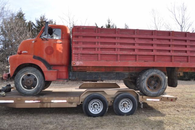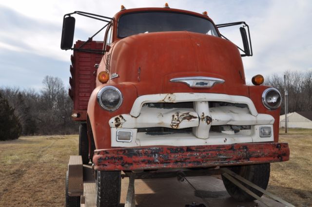 Selling my 1954 Chevrolet COE Cab Over Engine. Has the original 235 six cylinder. Runs GREAT, good clutch, shifts thru gears well. Needs brakes redone, were working but pedal goes to floor now. Driver side glass broken but have another one for it. Tires are all ok and do not leak. Has very nice full grain bed (not rotted) with fold over sides. Seats need to be redone. I have found only 2 spots of rust (pictured) on each door opening. Doors are solid and have door bottom covers, engine cover, and passenger floor cover/insert. This is the most solid COE I have ever seen and all original in VERY good shape. Front grill has some dents. I can't prove that it only has 8300 miles but due to condition and history that I know, it must be correct. Was used once or twice a year for the harvest and kept in a barn otherwise. Just don't have time for it.. One cab corner has been repaired but u can barely notice. Runs cool and will idle all day long. Prior owner said it spent all its life on a farm, parked in a barn, used a few times a year and it is evident. A VERY good truck!! It is shown on my trailer which is a 20 ft. dovetail, 78 inches between wheel wells, dual 7K pound axles. Truck is about 72 inches outside wheel to wheel. I will help you load it and secure it until arrangements are made for shipping. Located 10 minutes off of I-35, zip is 66030. Gardner, Kansas. $500 non-refundable deposit thru Paypal due at end of auction. Kansas Antique title in my name. I will cancel/block any bids with questionable feedback or history. Do not ask reserve please. I will not end auction early. For loading here are some measurements: 1. Height of cab top to ground - 92 inches. 2. Height of bed top to ground - 85 inches. 3. Width of front tires, outside of tire to outside of tire - 72 inches 4. Entire length of truck front to back - 257 inches |