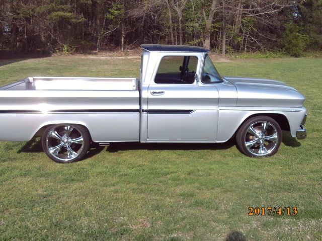 Beautiful All New 1963 Chevy C10 Truck All New Tinted Glass, Complete Off Frame Restoration, All New Chrome & Stainless, 1 Piece Door Glass, All New Seals & Rubber Moldings, Tilt Wheel With New 3 Spoke Steering Wheel, Relocated Gas Tank Under Bed, All New Wood Bed & Strips, New Rims 20x8.5 & Tires. 5 Lug Conversion, New Flow Master Exhaust, New Interior, Dakota Digital Dash, Painless Wiring Harness, Street Eagle Lowering Kit Lowered 4" In Front With 1" Drop Springs And 3" Drop Spindles, 3" Drop Springs In Rear, It Is All New From Top To Bottom & Bumper To Bumper, This New Crate 383 Chevy "Stroker" Motor Machined And Assembled At BluePrint Engines, Each Small Block Chevy Engine Is Dyno Tested (Includes Individual Dyno Sheet) And Comes With a 30 Month/50,000 Mile Warranty. Each Crate Engine Is Built To Crank Out 420 HP @ 5200 RPM And 450 FT-lbs. @ 4300 RPM.4-Bolt Main, 1-Piece Rear Main Seal Seasoned Block, All New Chrome Billet Pulley System With Chrome Alternator & Power Steering, All New Braided Hoses New Starter, New Power Disc Brakes New TCI Sizzler transmission 2100 TCI Stall All From Summit RacingThe Heater Box Was Removed From Under The Hood And New Heater Box And Fan Put Under The Dash, Nice And Neatly Done, Do Have All Receipts And Paperwork On The New Crate Engine And TCI Transmission, You Want Find A Nicer Truck, Very Straight And Tight, Paint Is Show Quality, It Is Cortez Silver And Black Which Makes It Stand Out From All The Rest, A Must See Truck To Appreciate, Pictures Do Not Do It Justice At All, Over 40K Has Been Put In This Truck, For Fore Call 336-951-0577 or 336-520-0527I Will Consider Reasonable Offer But No Low Ball Offers THANKS FOR LOOKING |