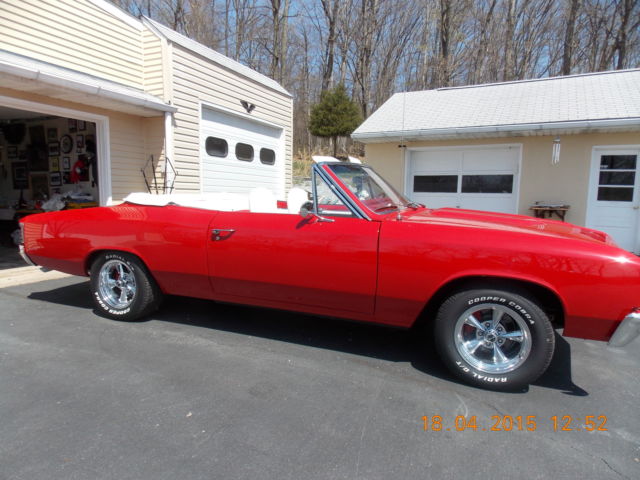 1967 Chevy Chevelle/Malibu Convertible, Resto Mod. This is basically a new vehicle with lots of modern amenities.All the following are NEW on this vehicle: Factory GM Motor, 350 cu. in.Elderbrock Fuel InjectionHeat and ACElectric WindowsInteriorTopExhaust4 Wheel Disc Brakes With Red Calipers to match the carWheels and TiresRadioElectric TopGlass windshieldGas Tank and Fuel LinesTilt Steering Column700 R Automatic Transmission This car was disassembled and stored in a shed in the 80's and was found again in 2014 in pieces in boxes. The rotisserie nut and bolt restoration began in late 2014 and was completed about 9 months later. It is 99.9% free of fillers, runs like a brand new car, has lots of power and plenty of extras. The speedometer read 96126 when it was found and after restoration it reads 96276. The speedometer wasNOT turned back when the restoration/modification was completed so itonly has 60 miles on the new motor. It was frame sand blasted and boxed for strength and has custom leather interior.We have more than $120,000 invested in the car. Good strong and sturdy vehicle, run great, has won many trophies. Real head turner.Needs nothing but a good driver who wants to enjoy a nice ride.