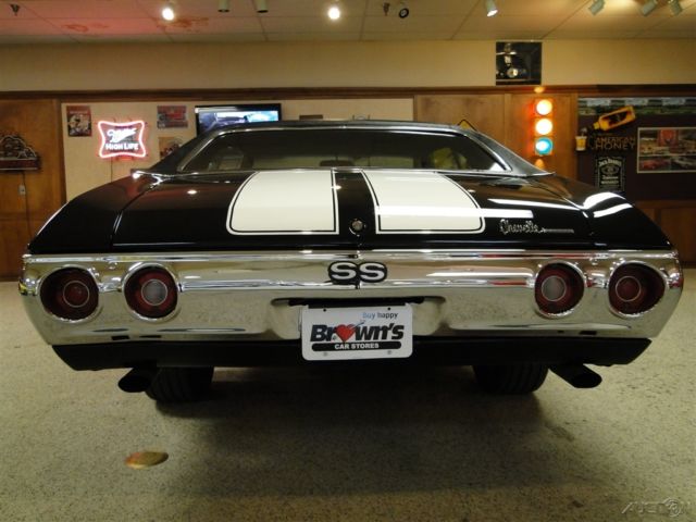 1971 Chevy Chevelle SS You are looking at a beautiful, triple black Chevelle equipped with new exhaust, new Edelbrock 4 bbl carb, factory a/c, cowl induction hood, power steering and power front disc brakes, new trim, new bumpers and new bright work. The black vinyl top is in excellent shape and looks great! a freshly rebuilt 350ci small block backed by a TH350 auto trans. This is one gorgeous Chevelle SS for a fraction of the price! Questions about our vehicles Contact Our Staff at Brown's Performance Motor Cars 410-553-6211 Only Tax, Tags and Processing not included. 410-553-6211 Only Tags, Taxes and Processing Fee additional to Brown's Price