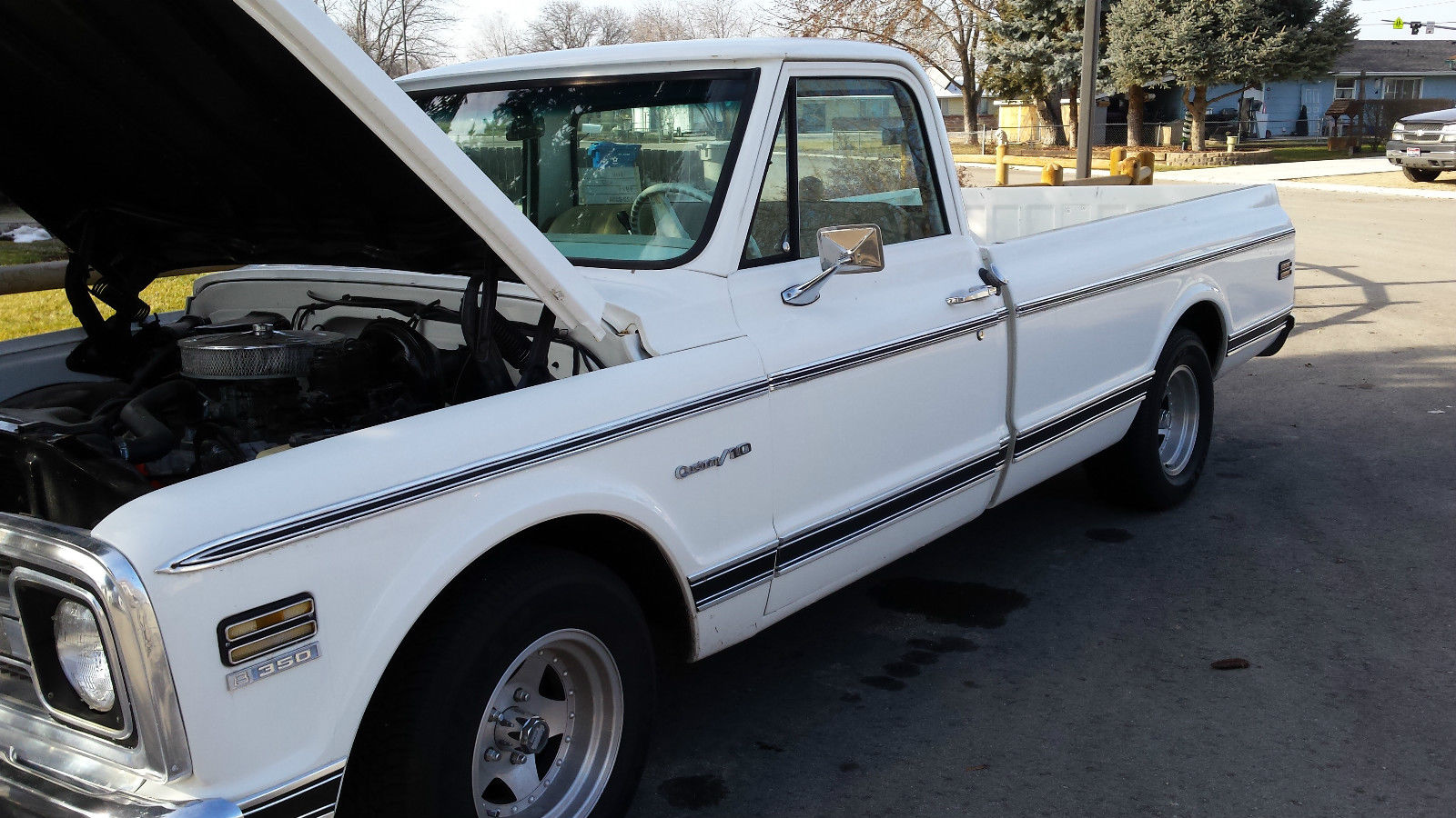 | Pickup has had full off frame restoration. 350cid engine bored 60 over. Fuely Heads. HEI Ignition system. 560 lift Cam. . Roller Rockers and guide plates. 2. 00 miles since restoration. 350 Turbo Transmission w/stall converter. Has tilt wheel/towing package/twin pipes and custom wheels. |