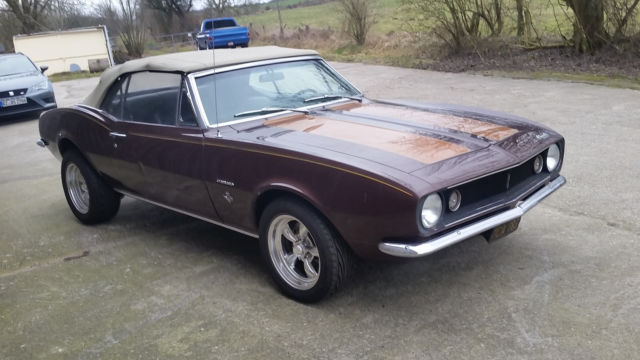 Selling my Camaro Convertible 1967. It is a blackplate car and also build in L.A. Very easy project because of the good body, only one dent in driver side door. Engine is already rebuild with lots of expensive parts, headers, Edelbrock intake and carb. At this time there is an ignition problem because two sparkplugs without spark...Should be easy to fix. Body was painted long time ago and is rust free and without bondo exsess. Floorpanels are also in very good condition. Car has disc brakes in front and rear. New American Racing wheels with new Toyo tyres. Car is located in Germany, very close to Hamburg and has already German title. Worldwide shipping. Buyer is responsible for vehicle pickup or shipping, but i will help arranging and can be arranged if the buyer pay for. Car is sold as is, without any warranty. Feel free to ask any questions before bidding or buying. To my person, i am 56 years old and a serious person. Look at my feedbacks and feel free to contact me to get my phone number.I love American Classic Muscle Cars. I often bought cars in the USA and now is the time to sell my first car worldwide, because my collection needs to be smaller.... German: Verkaufe ein 1967 Chevrolet Camaro Convertible zum "restaurieren". Der Camaro hat bereits Deutsche Papiere mit TÜV und H-Zulassung. Es ist ein Blackplate Car und auch in LA hergestellt. V8 Smallblock mit TH700, Scheibenbremsen vorne und hinten. Edelbrock Ansaugbrücke, Vergaser und Fächerkrümmer. Die 16er Torq Thrust sind neu, mit Toyo Reifen und ebenfalls eingetragen. Die Karosse ist frei von Durchrostungen, der alte Lack hat aber viel Patina und eine Delle in der Beifahrertür, ist dafür aber frei von irgendwelchen Spachtelexzessen, der Unterboden ist sehr gut. Der Innenraum, das Verdeck und teilweise die Technik müssen erneuert werden. Der Motor wurde bereits gemacht, läuft aber nicht wirklich sauber, das Getriebe schaltet sehr hart und das Lenkgetriebe ölt. Fahrzeugzustände beurteilt jeder anders und deswegen wird der Camaro zum restaurieren verkauft, damit keine Mißverständnisse enstehen. Der Preis ist nicht verhandelbar, die Garantie ist 1967 abgelaufen. Dafür gibt es aber eine Hebebühne bei der Besichtigung. Der Camaro steht in der Nähe von Hamburg. |