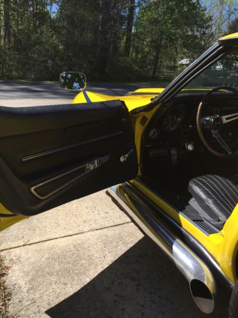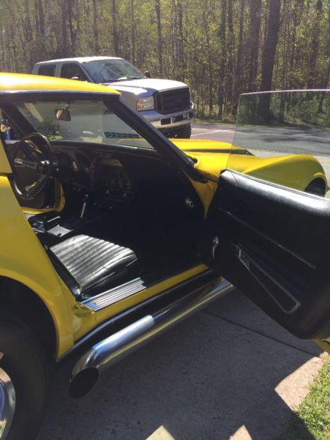 It has 64,000 miles on the body and less then 4,000 miles on the motor and transmission. It has power steering and power brakes. No power windows or locks. It has the telescopic steering wheel. Brand new high performance aluminum radiator with dual electric fans. All new carpet throughout the car with heat shielding underneath and insulation. Most parts on the car are brand new, I have most of the receipts for everything, and trust me there are way to many to list on here but call me and we can talk about them, but I do have most of the original parts that I replaced like the radiator, old gas tank, and such. It's not a matching numbers car it was originally a 427 390hp car but now it has a 1973 454 tht is mildly built, but the original transmission. I have no idea what happened to the original motor it was gone before I pulled the car out of the barn. I have a video of the car running and everything if you're interested. Thank you. Phone # 5672032939 call or text, thought I had a buyer but he backed out so car is back up for sale. Please don't call me and ask if I need help selling the Vette.