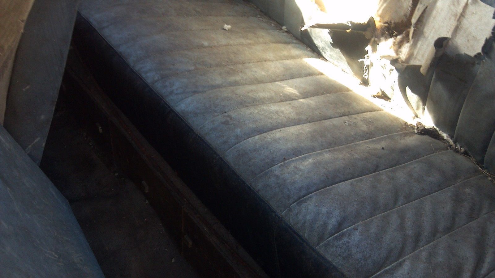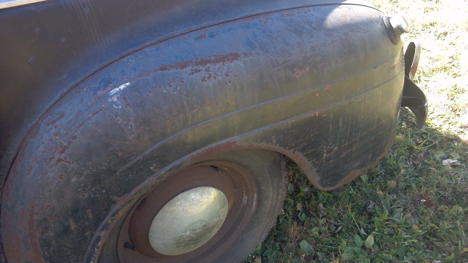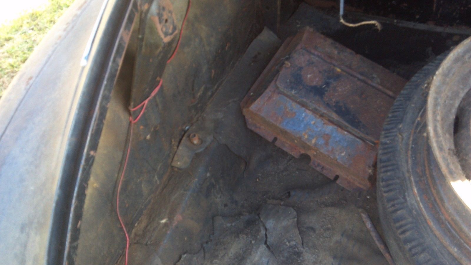 | . there is two spare rims in the trunk one with a tire. the jack base and lug wrench are there. the worst rust I see is the drivers side running board. . drivers floor has rust and the drivers rocker part. this car was sitting in a clean dry barn since 1974. im sure motor will run. the battery is still under the drivers seat and all. a coon got in the car and tour up the front seat stuffing at one point. all the headline |