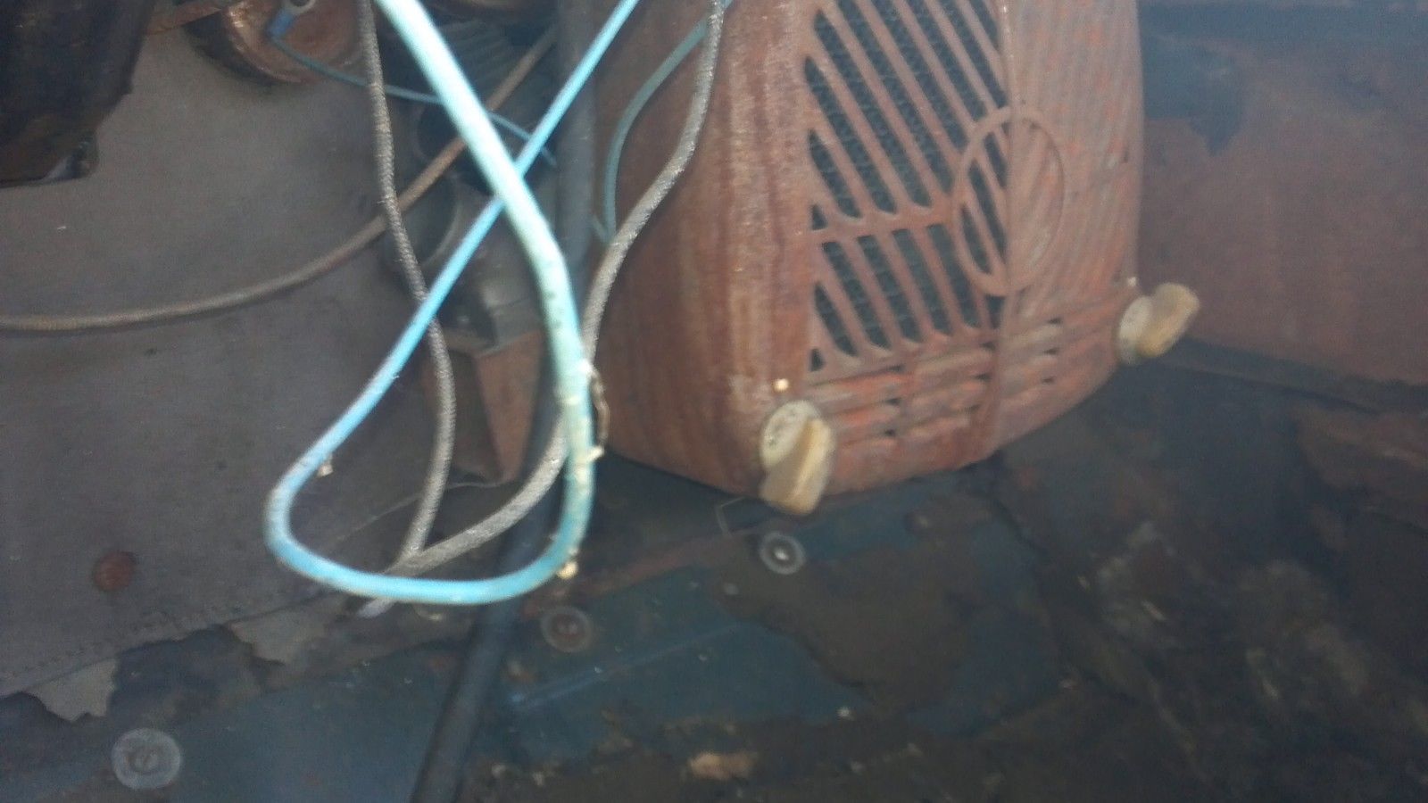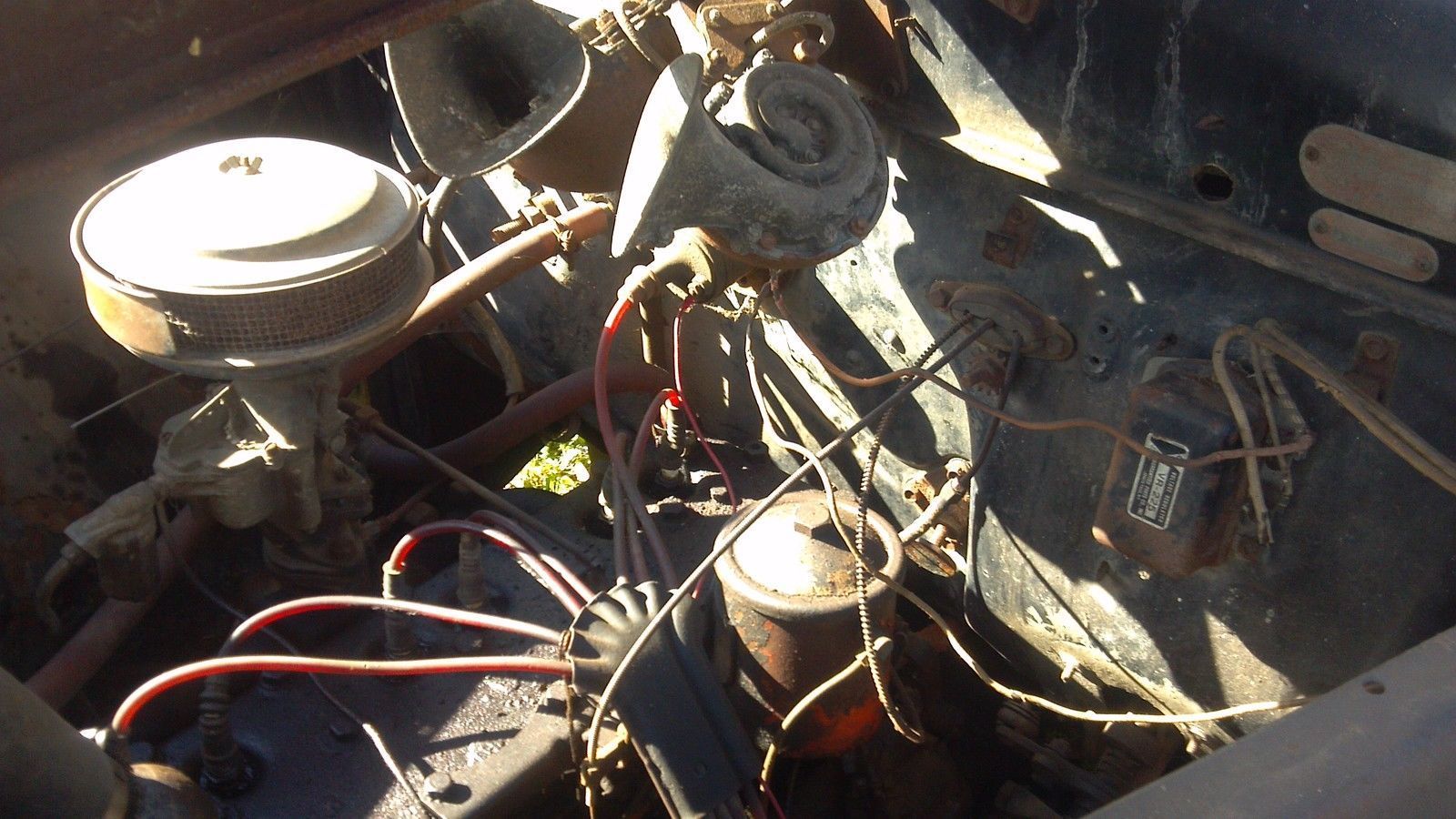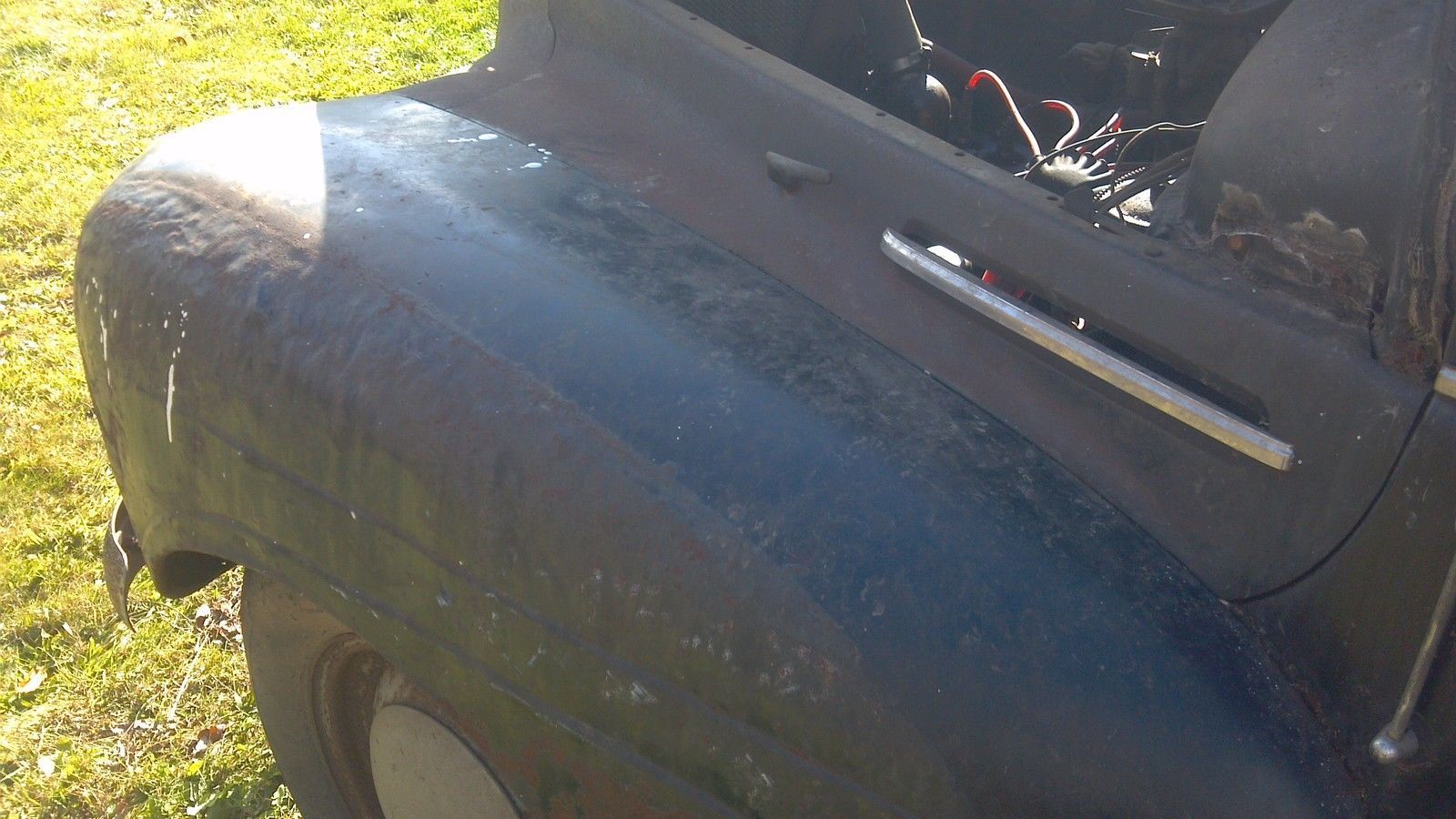 | . there is two spare rims in the trunk one with a tire. the jack base and lug wrench are there. the worst rust I see is the drivers side running board. . drivers floor has rust and the drivers rocker part. this car was sitting in a clean dry barn since 1974. im sure motor will run. the battery is still under the drivers seat and all. a coon got in the car and tour up the front seat stuffing at one point. all the headline |