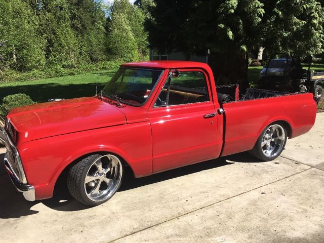 1969 c10 short bed fleet side 2002 chevy tahoe 5.3 with 102,000 miles has stage 1 cam with new valve springs heads freshened up same time got about 8,000 mile, has a PSL conversion wiring ki, fresh stage 1 4L60e tran, new drive shaf, 12bolt posi with new 3.73 gea, new headers and 2 1/2" Magnaflo exhaust system all the way to the bac, car has a static drop of 4 1/2" front 2" spring and 2 1/2" drop spindle, rear is c notched with with adjustable trailing arm rac, with exhaust openings rear has a 5" - 6" drop and sits on 20" rim, ,and wide wheel well, truck runs amazing a definite jump in and go anywhere with that being said it does have a little bit of typical driver side and passenger side rocker rust and front windshield will need a reseal passenger side has a small lea, ,, Paint was done about 12 years ago but still shows nice but a month ago this guy backed into me and dented the hood and the front gril, ,,will have pictures up in the ad in the next couple days very minimal damag, ,,i have tried to disclose everything about the truck this is a sweet set up it's not a backyard build I think my price is fair for what you're getting basically just do the rockers and you got yourself a really nice truck that i have seen guys selling for 24-28 thousand 💰💰 thx for yourtime*. * also have the truck listed locally and reserve right to end auction copy and paste link to YouTube video of truck running https://youtu.be/BqEkAnJYcy8