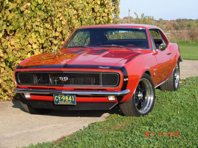 THIS IS A DREAM CAR FOR SOMEONE TO OWN. TOOK OVER 2 YEARS TO REBUILD. 3RD OWNER OF THE CAR RON HUSTEK. BUILT BY ROB WATTERS IIN PORT HURON MICHIGAN NO EXPENSE WAS TOO MUCH; HAVE A PHOTO BOOK OF THE ENTIRE BUILD THAT COMES ALONG WITH IT PLUS EVERY AND ALL RECEIPTS. THIS IS ONE OF THE SEXIEST CARS YOU WILL EVER SEE DETAILS BELOW ENGINE - BLUE PRINT ENGINES LS427 620HP/ 565FT LBS TRANSMISSION - TCI 4L80/TCI CONTROLLER/3500 STALL FUEL SYSTEM - DUAL 190LT/HR PUMPS, VAPORWORX PULSE WIDTH MODULATION EXHAUST - STANLESS WORKS HEARDERS 3" STAINLESS STEEL WITH ELECTRIC CUT OUTS HOOKER MUFFLERS FRONT SUSPENSION - DSE TUBULAR UPPER AND LOWER CONTROLLER ARMS; DSE COIL OVER CONVERSION; DSE/JRI SHOCKS; DSE ANTI-ROLL BAR; DSE 600 STEERING GEAR REAR SUSPENSION - DSE QUADRA LINK; DSE/JRI SHOCKS REAR END - GM 12 BOLT/ 3.55 GEARS; TRUETRAC POSI; STRANGE AXLES BODY - PPG DELTRON INFERNO ORANGE BASECOAT; PPG CONCEPT CLEARCOAT; DSE MINI TUBS; DSE SUBFRAME CONNECTORS; DSE SOLID BODY MOUNTS INTERRIOR - VINTAGE AI CLIMATE CONTROL; NVU GAUGES; POWER WINDOWS; TILT STEERING COLUMN |