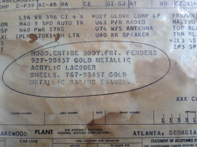 Time to bring it out from hiding, it has been in a garage for the last 13 years. this is a TRUE 1970 Chevelle SS 396 SCTri Centennial car, I do have the buildsheet still attached to the door panel I cut out, and selling SC dealeris still in business. I have protected some of the important numbers for ONLY the new owner. There are only 8 of these cars known to still exist. they were special order for the 300th founding anniversary of Charleston SC. you will notice the paint code is - on the buildsheet and cowl tag, that's because the paint option is circled in the center of buildsheet. special light gold....SC tri centennial ! Now for the car...Someone painted it blue at one point but all original sheet metal and doors, cowlpic is original paint.It has an originalCTW 1970 chevelle engine but not the right VIN stamped on the block with less the 2,000 miles on fresh rebuild but has not run in a while, turbo 400 and 12 bolt with swaybar F41 seem to be original. this is a factory a/c, power brake car.Front bucketsand rear bench are factory and with the car. I have all the trim and boxes of parts. New Front fenders, radiator support, and factorycowl hood. See photos. the car hasSOLID floors, front and rear around the glass, cowl, to, fram, ALL REALLY SOLID !!It will in myopnion neednew Quarters and truck pan which all do. I have new trunk pan and supports included. also repair panels for quarters if you choose to repair them. this is a project but also an investment. this is the real deal and worth a great deal restored !! please see all pictures and any question you can call 864-723-5514 HAPPY BIDDING !!!Clear SC title in my name ... Any bidder with less than 20 as feedback score must contact me before bidding !!