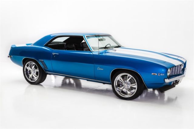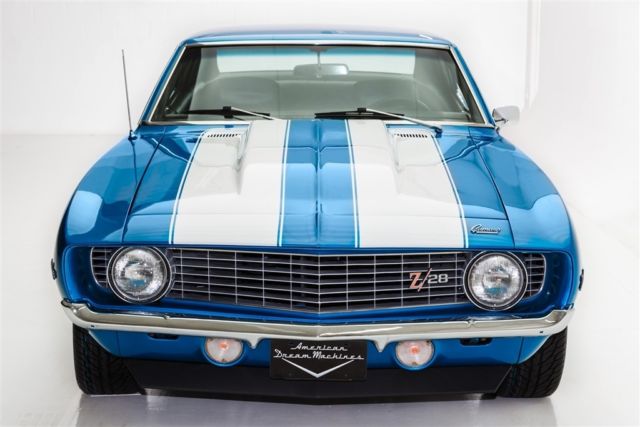 Description Electric Blue Street Beast, 1969 Camaro with a built 454 big block engine, Muncie 4 speed transmission, 12 bolt rear with posi and ground pounding 4.11 gears. Cowl hood, Z28 badges, front and rear spoiler, throaty exhaust and a wicked stance let you know this muscle machine means business. Rolling on new 20 inch rear and 18 inch front chrome Rev wheels and new General G Max performance tires for show and go.EXTERIOR: Very nice Electric Blue Metallic paint with white Z28 stripes that have been painted under the clearcoat. Front and rear spoilers Cowl hood Chrome wheel lip molding and rocker trim Great gaps, lines and body fitment New chrome Rev wheels with new performance tiresINTERIOR: Nice black standard factory bucket seats and dorr panels New cushion grip steering wheel New carpeting New sill plates New Hurst white ball shifter Pioneer AM FM stereoMECHANICS: Built 454 engine with lots of great performance parts Balanced 396 steel crank 427 TRW pistons Steel rods Pro Comp Roller rockers and lifters Square port heads Edelbrock intake with Holley 850 double pumper Hooker big tube headers Power front disc brakes Muncie 4 speed transmission with Ram clutch and Lakewood blow proof bell housing 12 bolt rear with posi traction and 4.11 gearsUNDERCARRIAGE: Super solid and intactAmerican Dream MachinesAt American Dream Machines, we typically have over 100 cars and trucks in stock and for sale. We have everything from Camaros, Mustangs, Corvettes, Roadrunners, Chevelles, Bel Airs, Blazers and even British Roadsters. Our classics and muscle cars range from the 1940s to the 1970s. Our stock is diverse and continuously changing and always growing! Our #1 Goal is to make you, our customer happy with the American classic and muscle cars we offer. We highly recommend that ALL CUSTOMERS call our knowledgeable, experienced and Midwest values staff and have a very detailed discussion regarding overall condition of any of our cars or trucks you are considering getting in the drivers seat of. (515)-245-9100 Centrally located in the heartland of America in Des Moines Iowa, American Dream Machines occupies the historic 41,000 square foot Packard Dealership. We are one of the largest full service classic car dealerships in the Midwest. We have 10 active hoists, mechanics bays, body shop and detail bays that are used by our technicians to inspect, repair, upgrade and detail our cars so that they are ready to be delivered to your driveway for you to drive. Give us a call and we would be happy to help get your dream car to almost any location worldwide! ALL OF OUR PICTURES AND VIDEOS ARE REAL, ALL THE WAY AROUND! We photograph our cars in our professional photo studio for the best possible image accuracy and representation of the cars. Our videos are created by our onsite staff in our shop and around the dealership / Des Monies area. We do this because of our commitment to the authenticity and quality of the cars that we sell and the commitment to our customers. Options and Standard Features Basic Information - Stock Number: 3898