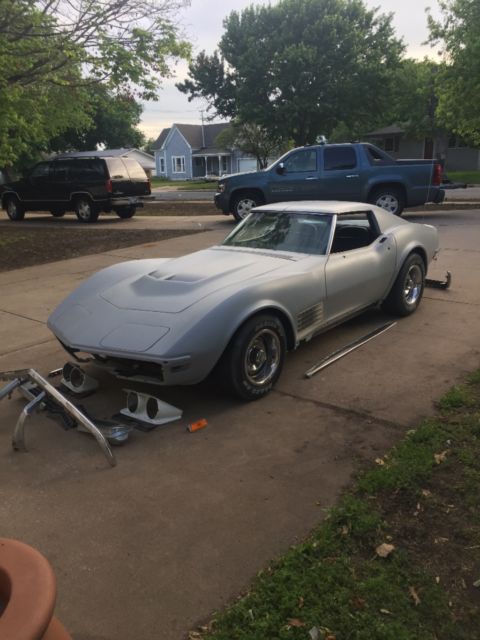 1970 LS5 454 390 hp, T TOP, Motor still has partial vin stamped on it, Car was a California car most of its life, still appears to have the rest of original driveline also, it has had new leather seat covers installed as well as carpets, shortly before i bought it, original and new door panels still in boxes that come with it. Body is in primer, 90 percent ready for paint. These 1970 454 cars are hard to find, 1970 was a short production year because of GM strikes, only about 4400 of these cars were made that year. The car runs and drives fine, i have bumpers, side chrome, moldings that go with the car, the car is complete as when i got it, with the exception of a spare tire and wheel, and ac compressed & brackets that were not there when I bought the car. vacuum door on wipers is not working, the car is nicely optioned with ps, ac, auto, pw, tilt & telescopic wheel, speedo is showing 53,565 miles. I easily have mid twenties in this car, so my loss is your gain, if you have questions call Vincent at 620 450 8477. thanks for looking. $500. deposit within 48 hrs end of auction, payed in full within 7 day of end of auction, buyer responsible for all shipping and transport.