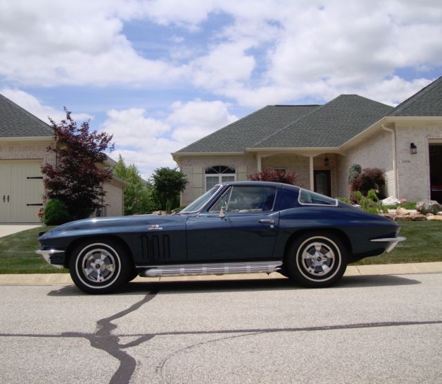 | 1966 Chevrolet Corvette Coupe L72 427/425 matching numbers big block, laguna blue, black leather interior, muncie M21 transmission, 3.70 positraction, side exhaust. Very original car, excellent driver.Call for more information: Paul 317-902-6864 |