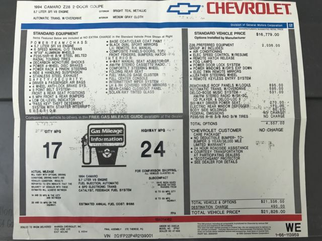 Here's a rust free 1994 Z28 loaded with only 69,000 miles.