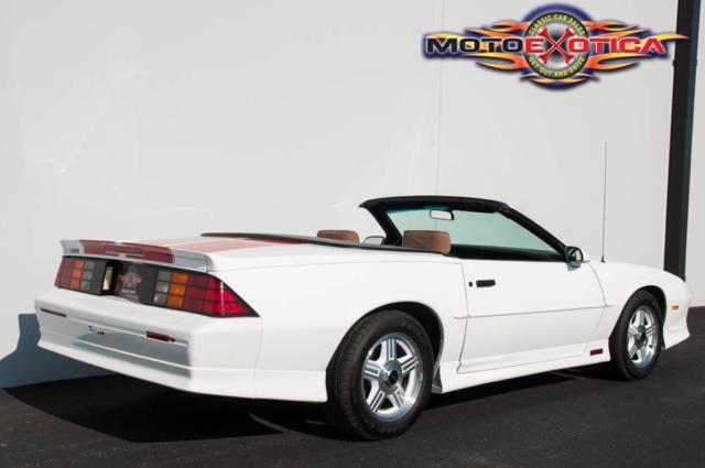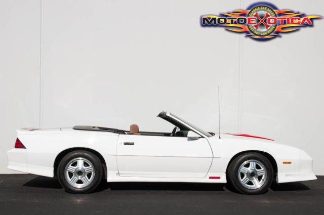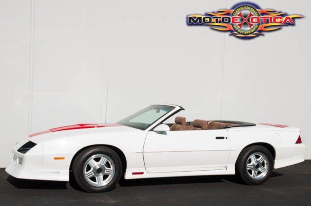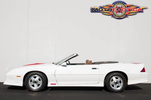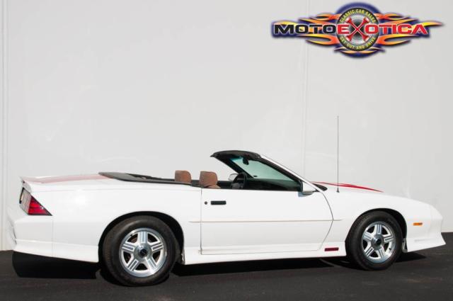 Fewer than 6,300 miles! This is a true survivor Z28 in collector condition Only a Two-owner car, previous owner had the car for 10 years One of 1,254 Camaro Convertibles made in 1992 "Heritage Package" option (RPO Z03) Final year of the third-generation F-body Cost $21,500 in 1992! Arctic White (code 10) exterior with red rally stripes, beige power-folding top and beige interior with black, gray and red accents 305 CID V-8 (LB9) with tune...d-port injection and 9.3:1 compression ratio Four-speed automatic transmission (4L60) and a 2.73 Positraction rear end Air-conditioning, power steering, power brakes, power windows, power locks, power seats, power mirrors and cruise control Ground effects package and rear spoiler Driver's airbag and PASS-key anti-theft system This is truly a find - an early 1990s ponycar with fewer than 6,500 miles on the clock - and it's here at MotoeXotica Classic Cars. We proudly present this 1992 Chevrolet Camaro Z28 Convertible "Heritage Edition" which is in remarkable preserved condition and only has had two previous owners who were both Camaro enthusiasts. The future value outlook on these low mileage 3rd generation Camaros look very promising and the time to buy one is definitely now as values will more likely increase over the next decade. Made in GM's Van Nuys, California factory, this two-owner vehicle is just one of 1,254 examples produced in 1992, when it stickered for about $21,500. Dressed in Arctic White (code 10) with red rally stripes with a beige power-folding top and beige interior with black, gray and red accents. This Z28 is very correct down to the bone, and still has that fresh showroom floor presentation to it! The Camaro's paint and trim are in impeccable shape; the car really looks showroom new. Its glass panels are clear and crack-free. The beige power-folding convertible top looks nearly flawless and when the top's down, it stores under a fiberglass tonneau cover. The car's lights are clear and haze-free, including the factory foglights. The car rides on factory, five-spoke aluminum wheels and white rims within Goodyear radials, sized 235/55R16 at all four corners. All of this pony's body panels are straight and solid, including the domed hood and the front and rear energy-absorbing bumpers. Under the red-striped hood is a LB9 305 CID V-8 with "Tuned-Port Injection" that was introduced in 1985. At its core was the stout L69 short block and it used the same aggressive L69 camshaft profile. The induction system was unlike any system used previously by GM. It featured a large plenum made of cast aluminum, with individual runners made of tubular aluminum, feeding air to each cylinder. And each cylinder had its own fuel injector fed by a fuel rail mounted above each bank. The engine bay is very tidy and the battery looks new. Backing the LB9 is a four-speed automatic transmission (4L60) and a Positraction rear end with 2.73 gearing. Driver convenience features include PASS-key theft-deterrent system, air-conditioning, cruise control, intermittent wipers, power steering, power brakes, power locks, power seats, power windows and power mirrors. Inside, the beige interior, with its red, black and gray accents, reflects the low odometer reading. The interior looks as showroom new as the outside. The front bucket seats and demi-buckets in the rear are in excellent condition. The matching carpet is in similar fantastic fare. The instrument panel, with its "25th Anniversary" badge, and full instrumentation is in one piece and crack-free. The black, four-spoke, leather-wrapped steering wheel with its airbag module is ready to grab and hold tight. The mirror glass, center console and shift lever are all in similar, like new condition. Finishing off the interior is a Delco-Bose AM/FM stereo with cassette deck. Nineteen ninety-two was the final year of the third generation Camaro. A "25th Anniversary Heritage Edition" option had been planned, with Corvette aluminum cylinder heads, tubular exhaust headers and six-speed manual transmission but this was scrapped in favor of a "Heritage Package" option (RPO Z03), which amounted to a graphics package of badges and rally stripes. Some TPI 1992 Camaros received some of the "leftovers" from its Corvette cousin, which switched from Tuned-Port Injection to the new LT1 engine series in 1992. They received the rough texture, cast aluminum style, intake runners from the TPI Corvette instead of the regular Camaro smooth tube ones. In some cases, they were built with black painted valve covers instead of the normal silver valve covers. Some also received a blank throttle body plate, like the LT1, instead of the normal plate with "Tuned-Port Injection" script. This was also the last year of production at the assembly plant in Van Nuys, California (and the United States as a whole). Competition to this Camaro in 1992 included Ford's Mustang GT 5.0 Convertible, Mazda's RX-7 Convertible and Nissan's 300ZX Convertible. Whether you are a Camaro fanatic, a Z28 fan or just someone who wants a classic Chevy convertible without a lot of mileage that has tons of investment potential in the future, this is a car worth checking out in person - before someone else does. This car is currently located at our facility in St. Louis, Missouri. Current mileage on the odometer shows 6,284 miles since the gauges were tested and reset. It is sold as is, where is, on a clean and clear, exempt mileage Missouri title. Also included with the original Indiana title (now void) stating mileage before the transfer to Missouri. GET OUT AND DRIVE!!! |