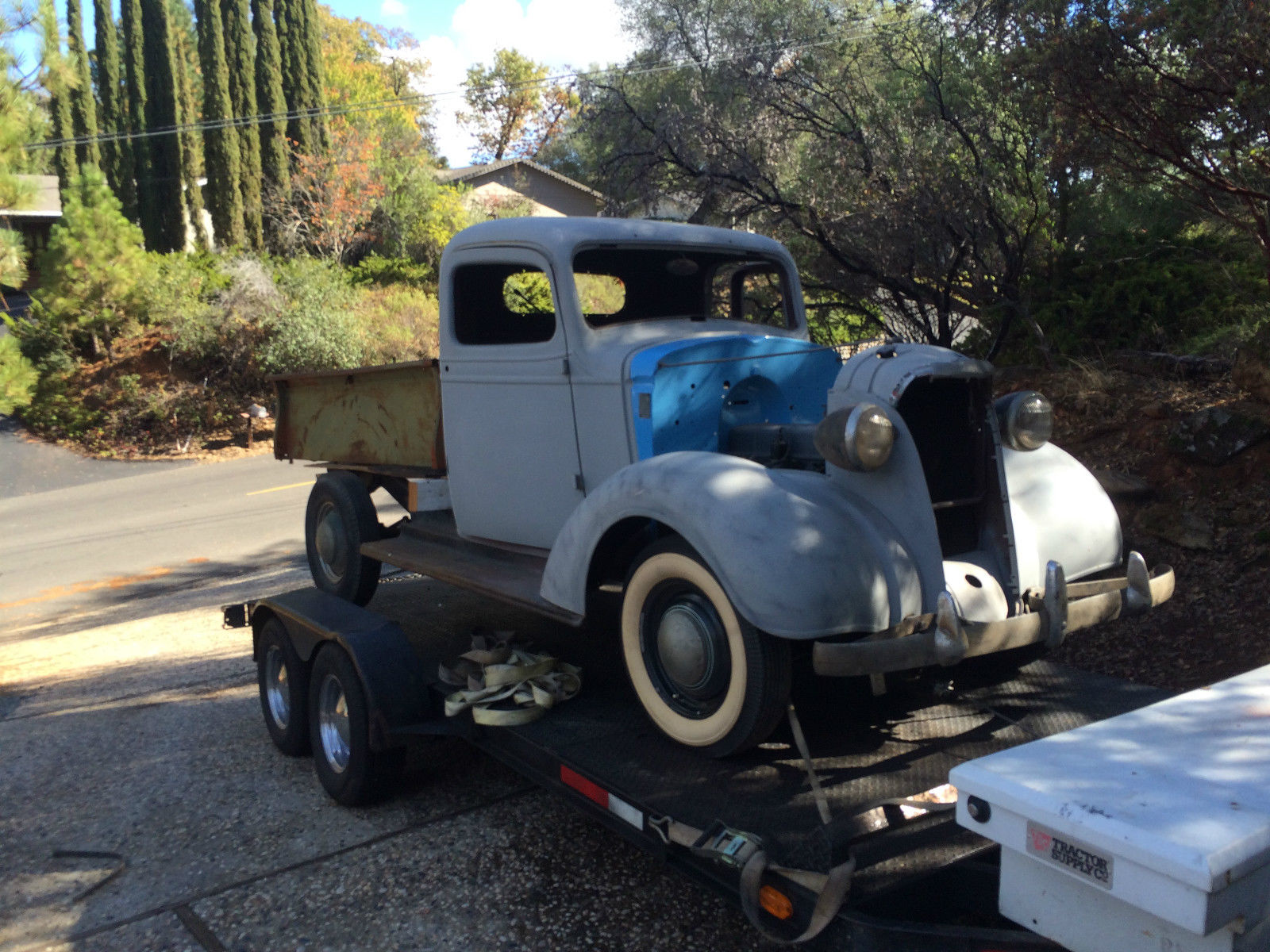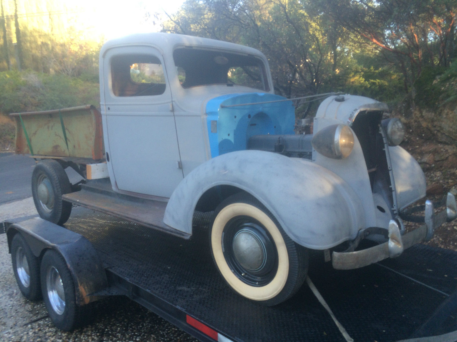 | 1937 Chevy Pickup. Half Ton Short Bed Truck was a long term restoration project that stalled out. It has been garaged the last 30 years and sheet metal is excellent with no rust ever. The truck was being restored to stock. The chassis is done. Rebuilt original 216. All original parts were restored. springs re-arched etc. Still has lever action shocks. Over $2800 was spent on motor alone. 7 years ago. The cab is excellent and complete. all trim. original gauges. wiring etc. Nice rust free windshield frame. good windshield crank out. Doors are complete with garnish moldings. Original gauges are mint and not faded out. No original bed. It was discarded to be replaced with a new one from Mar K ($1500 delivered. complete). It does have a 1941 bed that could be used. No rear fenders. Nice original running boards included. The other items missing are grill. lower seat springs. gas tank. I have all original handles (with keys) emblems. hood ornament etc. All 5 original wheels included. Doors have never had rust. Nice door panels. I can store the truck indoors for 30 days while transportation arrangements are made. The truck has original vin tag. No title. I will send a Bill of Sale. |