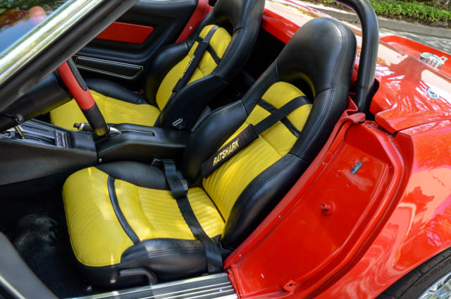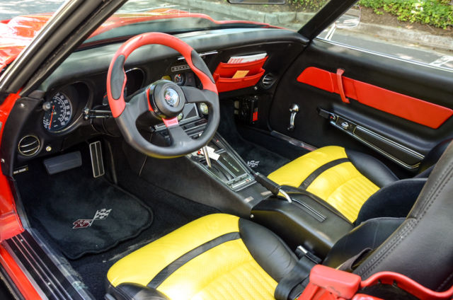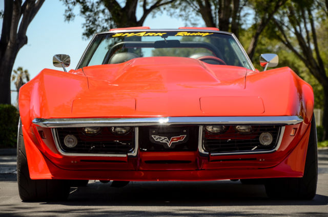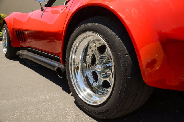 Classic Car Fusion is excited to offer this newly restored and customized 1969 Corvette convertible ZL-1 clone. Completed in 2012, this street/road race car has a custom built Shafiroff Racing aluminum block 509 with all forged and coated internals, T&D valve train, roller street cam, and road race oil pan. Mated to a new Performabuilt 4L60E "Level III Invincible" automatic transmission with HGM controller and a Gearvendors 5th gear electric overdrive for highway cruising (75mph @ 2200rpm) this Trans-Am style C3 is as comfortable on the freeway as it is on your local road coarse. Backed by a Dana 44 with 4.11 gears and a REM polished and reinforced case, this car puts down 640HP at 5900rpm allowing it to run low 11 seconds in the 1/4 mile. Traction is put down through Mickey Thompson Street Radial ETs wrapped around lightweight Bogart LS6 17x11 wheels, while J-56 brakes with ti rotors and Hydroboost helps bring everyting to a stop. The body has one off custom fiberglass Trans-Am style fender flares, front splitter and rear spoiler. Below is a list of more engine and suspension components. Engine: Brodix aluminum block APR studs Calico forged and coated pistons 10.25:1 compression ratio Comp Cams HR 245/254 with 114 lobe separation at 0.660 lift Ferrea hollow stem valves Lunati bee-hive springs Ti retainers T&D shaft mount rockers Comp Cams short travel lifters Suspension: Steeroids rack and pinion 460# Touring coil overs KYB gas shocks Reinforced 1982 frame Tordh red paint |