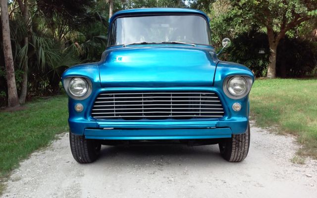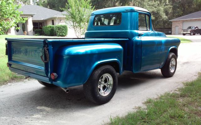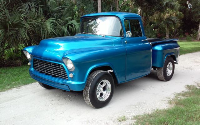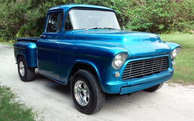 Great looking 55 Chevy pickupon 1985 Chevy C-10 frame and running gear, approximately 15-20 year old restoration. Power steering, power front disc brakes, runs and drives great,just likea 85 Chevy pickup. Has the wiring harness and fuse blockfrom the 85, has workingseat belts, tachometer,fuel level, engine temp and oil pressure gauges, and the wipers, lights, and speedo alsowork as they should.The454 motor runs good, is basically stock with mild cam, Edelbrock carb, headers with dual exhaust. It is done in Hot Rod style therefore theexhaust is kind of loud.Interior is complete and in good condition, recent carpet and seats, tilt wheel,non working original radio, originalcluster is intact, after market tachometer and gauges.All glass newwhen redone and in excellent condition except passenger sidevent windowhas a crack, windows go up and down smoothly and doors open and close as the should. Truck is very solid although not perfect. Afterthe years it has rust coming back and did have a sunroof installed back in the day. Thefloor pan, rockers, cab corners, and bottom part of cab is very solid, around back window, cowl area and roof are where it will need attention to take it to next level. Doors are 100% rust free, bed and fenders are in very good condition with minimal issues.Great truck for the money! Overall a great running and driving big block 55truck that can beenjoyed as it isright now or redothe body and have a nice high dollarride. Your inspection is welcomed and encouraged, I am retired and live right off I-95in Mims Fl 32754, 30 minutes south of Daytona. Thank you for checking out my truck, please note my feedback andbid with confidence.Delivery in south east may beavailable for$1 rollingper mileCan be reached via e-mail or serious inquiries can text or call for faster response 32l 2l3 58l0 NOTE: Reserve price is just under 10k, auction may end early as truck is for sale locally for $16,500