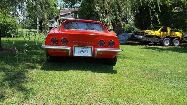 engine isnot number matching drive train built 454 bored and stroked to 468 and wayover 500+horses and 500+ torque has about 3500 miles on it and trans built few years ago car was in storage for some time I do drive it on the weekends every now and then fun to drive this is a powerful car and fast as ------ new tires and brakes calipers and master cylinder and pads new gas tank and sending unit and strapes new carpet install this a driver now fast fast car. body has no cracks clean title new front air dam install this week birdcage soli, framenice cleaned I wired brushed it cleaned to check it andI undercoated the frame only rust left I see needs fixed is under the radiator is a crossover member it has 4 bolts hold it in easy to replace new one on ebay is 185 dollars. Dash pad has1 crack in it door panels like new car was frame on restored20 years ago and stored in basement climate controlled for years the man was in air force and wassent over seas a lot was his toy very hard car to fine that's not been cut on parts missing pretty much a complete car and original except engine i'm still working on car as I get it to the next level the price goes up higher and more I get done harder it will be to sell it I have tried to be very descripted of the car best to call if any ??????????? please call me if serious no do not need help selling it call me at 615-430-4048 for any info anytime I live in crossplains tn 37049 look it up