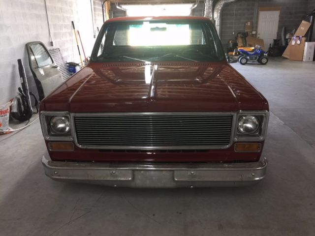 Being relisted due to a NON Paying bidder, You are bidding on my 1973 Chevy C10 truck, ORIGINAL 6 CYL and AUTO TRANS, New American Racing 20" polished Torq Thrust wheels, was repainted years ago and has some imperfections in the paint but still cleans up very nice, driven a few times a week, gauges work intermittently, has new dash pad, gauge bezel, gauge lenses, door panels, armrests, door carpet, interior door handles, window cranks, all parts bought new from LMC, new Forever Sharp Steering wheel, brand new LMC front bumper, custom grill, bed wood still intact and has been sanded but not cleared yet, also comes with new tailgate chains, I noticed the other day that the transmission has a small leak, other than that I know of nothing that the truck needs, clear TN title in hand, truck is registered to me and insured, If you are looking for a cool old truck to drive around and to shows etc then this is the one for you. This old truck runs and drives great like an old truck not a new cadillac, not perfect but very nice. Truck is for sale Locally and I reserve the right to end auction at ANYTIME, Good Luck and bid to win