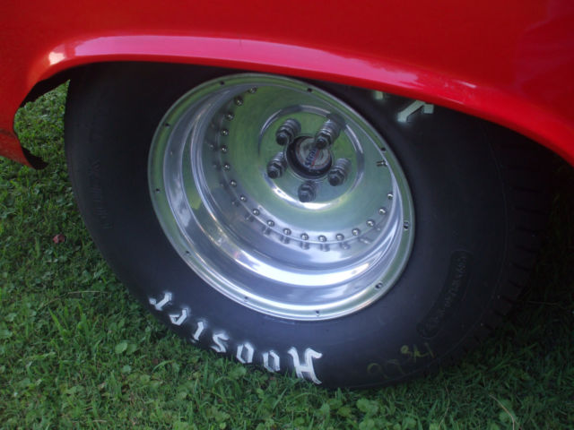 This is a street legal "Pro Street" that runs on Premium 92 octane Gas. The 572 cid motor has been built, with a solid roller cam, racing profiler heads with T&D shaft roller rockers that's been CNC, adjustable timing belt, steel crank with steel H beam scat rods, forged flat top pistons, single plain intake with a Holly 4500 carburetor. Chassis has been backed halfed with 9" narrowed setup, with racing spool. New DOT approved Hoosier 31X18.5X15lt tires on rear. New dual batteries in trunk with fuel cell. Could be converted back to drag car easily. Have drag slicks and wheels and fiberglass lift off hood with scoop that's not pictured that will go with vehicle. I'm listing this car for a neighbor, he can be reached to answer any questions at 336-498-3672 between the hours of 9am to 5pm eastern standard time. The reserve is set at a fraction of what is invested in the car. $500.00 deposit required within 48 hours through pay pal at close of auction.