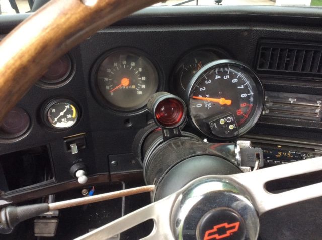 | Rebuilt 4bolt main 350, Edelbrock cam, alum.heads,alum. manifold, carb. Herman long tube headers, Muncie 4 speed, orig. 12 bolt rear. New Cragar wheels and comp T/A tires. New bed wood. Hurst Competition Plus shifter. Not perfect but very nice. |