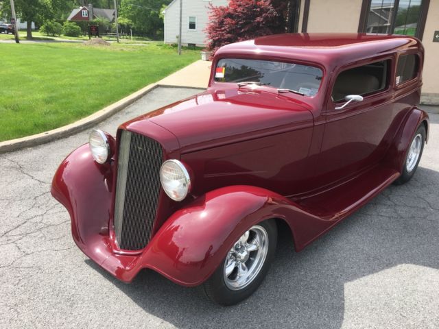 HERE WE HAVE A VERY RARE FIND. THIS 1934 CHEVROLET VICTORIA(VICKY) STYLE BODY STREET ROD WAS BUILT BY THE LATE, LEGENDARY BUILDER BARRY LOBECK FROM CLEVELAND OHIO. IT DOESN'T GET ANY BETTER THAN THIS. THIS CAR IS ONLY FOR SALE DUE TO THE UNTIMELY DEATH OF ITS OWNER. HE ONLY OWNED QUALITY CARS AND REALLY ENJOYED DRIVING THEM AS SHOWN BY THE MILEAGE. THIS WAS NOT A TRAILER QUEEN BUT STILL LOOKS LIKE ONE ON TOP AND UNDERNEATH. IT WAS DRIVEN TO SEVERAL SHOWS THROUGHOUT THE COUNTRY AND WAS PART OF LOBECK'S MILE HIGH TOUR IN 2000. THE ORIGINAL OWNER CHOSE A DOWNS BODY AS HE LIKED THE SLANTED "B" PILLARS THAT GIVE THIS CAR ITS UNIQUE LOOK. THE CUSTOM BUILT CHASSIS FEATURES A HEIDT'S FRONT END, ALL POLISHED, AN ALUMINUM HEAD ZZ4 ENGINE, A 700R4 PHOENIX TRANSMISSION, FORD 9" REAR W/3.73 GEARS, DAKOTA DIGITAL DASH, HEAT AND AC AND MUCH MUCH MORE ALL SITTING ON POLISHED AMERICAN WHEELS. THE CURRENT OWNER(ALMOST 20 YEARS) KEPT THE CAR IN OUTSTANDING CONDITION AND PERFORMED UPDATES AS NEEDED. THE INTERIOR WAS THE LATEST UPGRADE FINISHED IN A LIGHT TAN ULTRASUEDE MATERIAL THROUGHOUT. IT WASALWAYS STORED IN A CLIMATE CONTROLLED BUILDING. LOOK OVER THE PICTURES AND GET READY TO ENJOY THE NEXT 20 YEARS IN A CAR THAT STILL LOOKS BRAND NEW!!! THIS CAR WAS ALSO FEATURED IN BOTH STREET RODDER AND SOUTHERN RODDER MAGAZINES!! INCLUDED IN THE PURCHASE IS A PULL BEHIND TRAILER WHICH IS A SMALLER VERSION OF THIS 34 AND PAINTED TO MATCH. THE CURRENT OWNER NEVER USED THE TRAILER. I HAVE SEVERAL MORE PICTURES BUT EBAY ONLY LETS ME PUT UP 24. ASK AND I WILL SEND. IT RUNS AND DRIVES EXCELLENT. PLEASE ONLY BID IF YOU ARE READY TO BUY. THIS IS A SERIOUS SALE SO NO GAMES. $1000 NON REFUNDABLE DEPOSIT DUE IN 48 HOURS, BALANCE WITHIN 10 DAYS, I WILL ASSIST WITH YOUR SHIPPING ARRANGEMENTS IF NEEDED. YOU ARE MORE THAN WELCOME TO COME AND LOOK OR SEND AN INSPECTOR TO VIEW THE CAR. PLEASE CONTACT ME TO MAKE AN APPOINTMENT. THANKS! |
