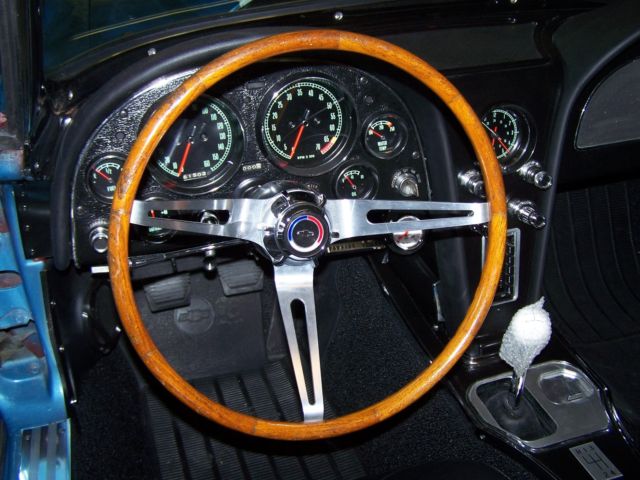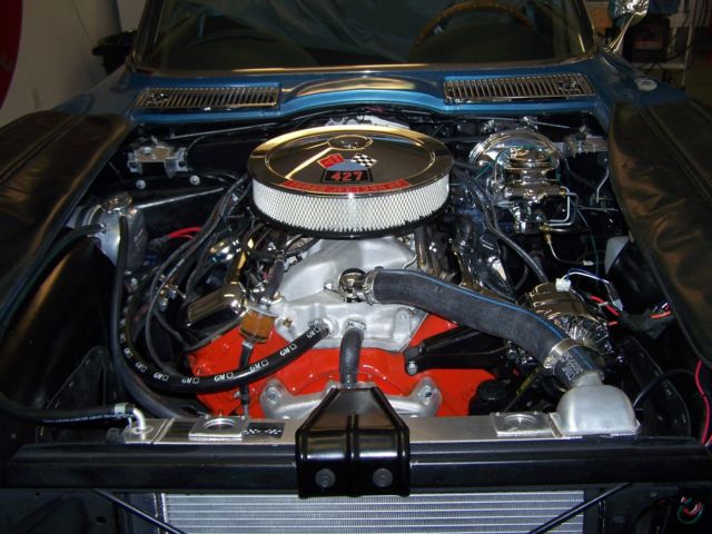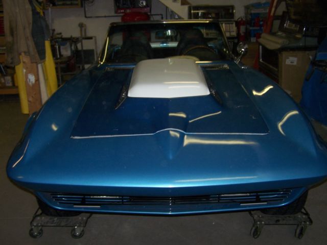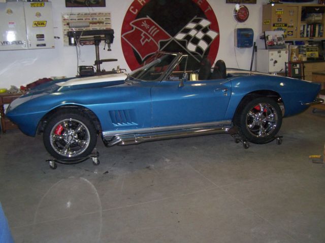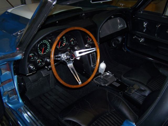 This is my 1965 Corvette convertible that I have been working on since 2011, I built the car to my liking and have over 30,000.00 in receipts alone not including the original purchase price of the car.I finished it this spring and have put about 400 miles on it since,Small road trips so far, shaking her down and have had no major issues, Some of the larger ticket items on this build would be,the purchase and complete professional rebuild of a 1969 corvette 427-435HP engine, complete rear coilover conversion kit from Van Steel $2600.00 that include the offset rear trailing arms,Tubular front a-arms with coilovers $2300.00, Wilwood slotted and drilled big brake system was over 3000.00 alone,purchase and rebuild of an original M-22 Rockcrusher transmission,rear end was professionally rebuilt and has low gearing in it 411s, Hooker chrome headers with the large 4" sidepipes give that 427 an awe sum deep tone.I did not remove the body but did a complete frame on restoration of the car that includes every nut and bolt and every single system.I did not restore the body,. I left it alone besides giving a buffing to get some shine out of it, paint is fair driver condition has chips and some flaking, small cracks but still looks great from 10' away, I liked the patina so i left the body alone, super solid frame that I used por-15 on, cleaned the underside of body and detailed, everything on frame was rebuilt or restored,has Power steering and Power brakes also, all new wiring harnesses, complete interior restoration,Car has a telescopic column that I restored and I purchased an original yes original very rare Teakwood steering wheel very very nice wheel, gauges were NOS, clock was a quartz conversion, Tachometer is not connected as the distributor was non tach drive, that was something I was going to change, I don't like the radio I purchased, it is a custom autosound that is crap, usb works sometimes radio seems also to skip, another item I would change out, I customized a set of 2004 Z06 seats that sit and feel great in the car, new soft top, the list goes on and on but u get the idea, I was building the car for myself so overlooked nothing, getting older and have other interests so want to see what kind of interest I will get on it.There is NO title with this car, Maine does not require titles on the older autos so you will need to see what you need from your state,will come with a bill of sale only, NO TITLE and I do not want to trade anythin, if it sells cash or wire transfer only. Also the buyer would have the option of purchasing separately another rear end with 370 gears if you want to change the gears out and also an original 1967 black vinyl hardtop.