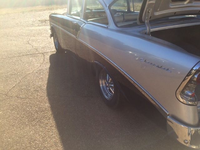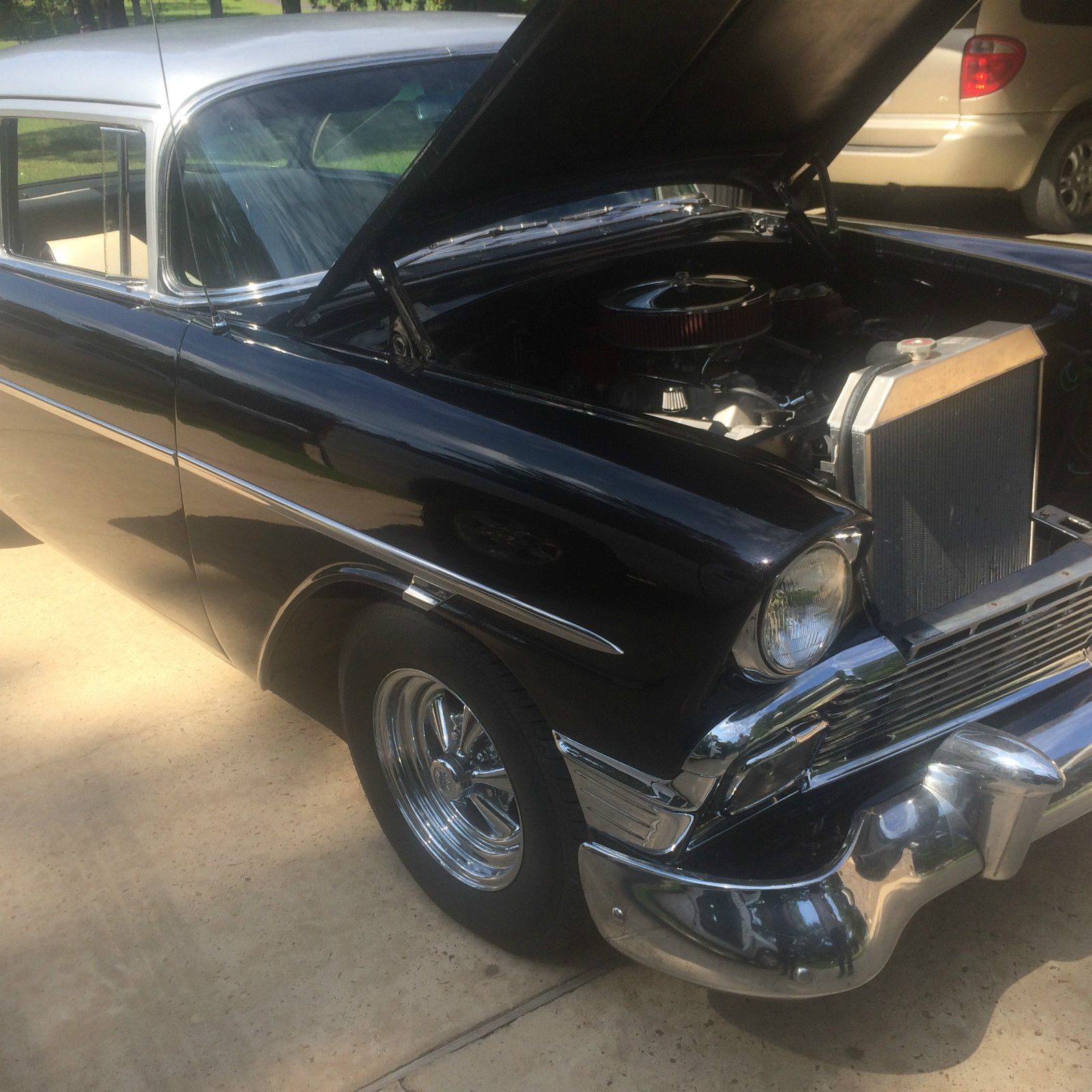 | 1956 2dr post with new 454 and M214speed You are bidding on a very nice 1956 Chevrolet 2 door post car. This car has had lots of money and lots of new parts replaced over the years. The front brakes have been converted to Disc brakes. The front end has been rebuilt with all new parts and drives great. Solid frame Rebuilt rear end with posi unit and 370 gears. Complete redone drive train such as a Balanced 454 big block with thousands in receipts. rebuilt M21 4 speed. This motor has all the power you will need and sound great. New wiring from front to back including new style fuse box . New interior. Dakota dash and the list goes on and on. The paint is base coat clear coat and looks great but is driver quality. It not a 100 point show car but it does turn heads and gets a lot of thumbs up everywhere I take it . I got the car from the man who has had it for 18 years and kept it inside his shop. If you are looking for a nice 56 that you can buy and not have to get a second mortgage on your house or sell you kids you have found it. check out the pictures and Check my feed back I don't sell junk. Thanks |