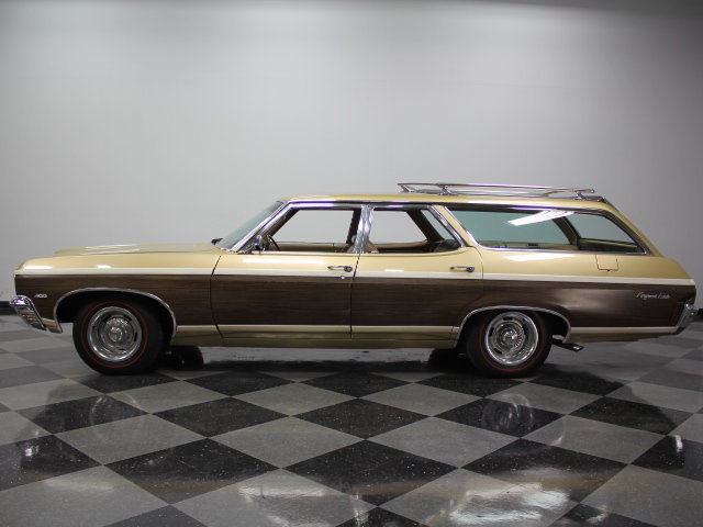 | Got a classic car to sell? We can Sell it! Call us Today! 1970 Chevrolet Kingswood Stock #2861-CHA 1970 Chevrolet Kingswood for Sale Charlotte Showroom 5400 West WT Harris Blvd Charlotte. NC 28269 Local/International: (704) 598-2130 Toll-Free: (866) 542-8392 Hours: Tues - Fri: 9AM - 6PM EST Sat: 9AM - 5PM EST Email: sales-cha@streetsideclassics. com Atlanta Showroom 213 Thornton Rd Lithia Springs. GA 30122 Local/International: (678) 279-1609 Toll-Free: (877) 367-1835 Hours: Tues - Fri: 9AM - 6PM EST Sat: 9AM - 5PM EST Email: sales-atl@streetsideclassics. com Dallas/Fort Worth Showroom 5400 Sandshell Dr Fort Worth. TX 76137 Local/International: (817) 764-8000 Toll-Free: (855) 877-2707 Hours: Tues - Fri: 9AM - 6PM CST Sat: 9AM - 5PM CST Email: sales-dfw@streetsideclassics. com VEHICLE SPECIFICATIONS ENGINE: 400 V8 BODY STYLE : Station Wagon TRANSMISSION: Automatic (Column) EXTERIOR COLOR: ODOMETER READING: 72086 INTERIOR COLOR : Brown VEHICLE FEATURES & OPTIONS Heat. Air Conditioning. AM Radio. Defrost. Front Disc Brakes. Power Brakes. Power Steering. Seatbelts. Tilt Wheel. Vinyl Interior SELLER REMARKS Many growing households in the 70's were forced to give up Corvettes or Camaros and look at more practical family vehicles. Thankfully. we had vehicles like this 1970 Chevrolet Kingswood that provided practicality without sacrificing on V8 power. Station wagons have seen a rapid rise in popularity as of late. This Kingswood station wagon can comfortably seat eight making it perfect for events like the Hot Rod Power Tour. Coated in the original paint color of code #55 Gold. with Woodgrain siding. this Kingswood is in fantastic shape considering most of these were used and abused by large families. The woodgrain paneling follows the sides around to the back two-way tailgate. When opened from the side. the gate has a cutout allowing easy access to the third row seating. or a step up to be able to access the luggage rack. The chrome work is bright and shiny including the luggage rack on the roof and for this car being over 40 years old it is a spectacular driver. This 70's beauty features a well-preserved and original Saddle colored vinyl interior. The bench seats are clean and ready to be packed full for a road trip including the optional third row seating that does in fact face backward offering the passengers a completely different view. The door panels. dash. and steering wheel all have some wood veneer inlay offering a more top of the line feeling. The dash appears to have all the original gauges. This Kingswood left the factory as a highly optioned unit including power steering. power rear window. air conditioning. and the wonderful AM radio. The second and third row seating fold down flat allowing ample room for anything that needs hauling. and the carpet still looks plush and clean. With a vehicle this large you would expect it would need V8 power. and thankfully. that is exactly what is nestled under the hood. While we are unable to say definitively that the engine is numbers matching. we can say that this 400 cubic inch V8 is at least period correct. and very well could be the original powerplant. The engine looks completely factory. covered in the famous Chevrolet orange and still wearing the correct 400ci decal in the flat black engine bay. The small block sends power to what is believed to be the original automatic transmission. Stopping power is supplied by the power disc brakes in the front and power drum brakes in the rear. In front of those brakes you'll find 15" Rally wheels wrapped in 225/70/R15 rubber. This blast from the past is clean and not overly done. and it brings a smile to many of our faces that remember traveling in a wagon back in the day. Take this station wagon with you camping. on a weekend trip. or even to a car show. as it will be sure to spark many memories and plenty of conversations. This wagon won't last long so call today! 1970 Chevrolet Kingswood for Sale 1970 Chevrolet Kingswood for Sale Stock # 2861-CHA Charlotte Showroom 5400 West WT Harris Blvd Charlotte. NC 28269 Local/International: (704) 598-2130 Toll-Free: (866) 542-8392 Hours: Tues - Fri: 9AM - 6PM EST Sat: 9AM - 5PM EST Email: sales-cha@streetsideclassics. com Atlanta Showroom 213 Thornton Rd Lithia Springs. GA 30122 Local/International: (678) 279-1609 Toll-Free: (877) 367-1835 Hours: Tues - Fri: 9AM - 6PM EST Sat: 9AM - 5PM EST Email: sales-atl@streetsideclassics. com Dallas/Fort Worth Showroom 5400 Sandshell Dr Fort Worth. TX 76137 Local/International: (817) 764-8000 Toll-Free: (855) 877-2707 Hours: Tues - Fri: 9AM - 6PM CST Sat: 9AM - 5PM CST Email: sales-dfw@streetsideclassics. com TERMS OF SALE 1. Per the eBay User Agreement. by placing a bid you are entering into a legally binding contract and are committed to purchasing the vehicle described above. The details of this commitment are further outlined in the eBay User Agreement. 2. Vehicle may be sold by Streetside Classic Cars prior to the end of the auction. Streetside Classic Cars reserves the right to end its auctions early or to cancel bids solely at its discretion and shall not be held liable for any such cancellation. 3. The winning bidder is required to contact Streetside Classic Cars within 24 hours after the close of the auction to finalize the details of the transaction. 4. A $1. 00 non-refundable deposit is required within 48 hours of the auction's close. This deposit reserves the vehicle and removes it from the market. Acceptable payment types for deposit are: credit card. wire transfer. cashier's check. and money order. 5. If winning bidder does not contact Streetside Classic Cars and submit deposit within 48 hours of auction close. vehicle may be made available to the next highest bidder or another qualified buyer on a first come. first serve basis. 6. Streetside Classic Cars has represented this vehicle to the best of its ability. Prospective bidders are encouraged to contact us directly to provide additional information 