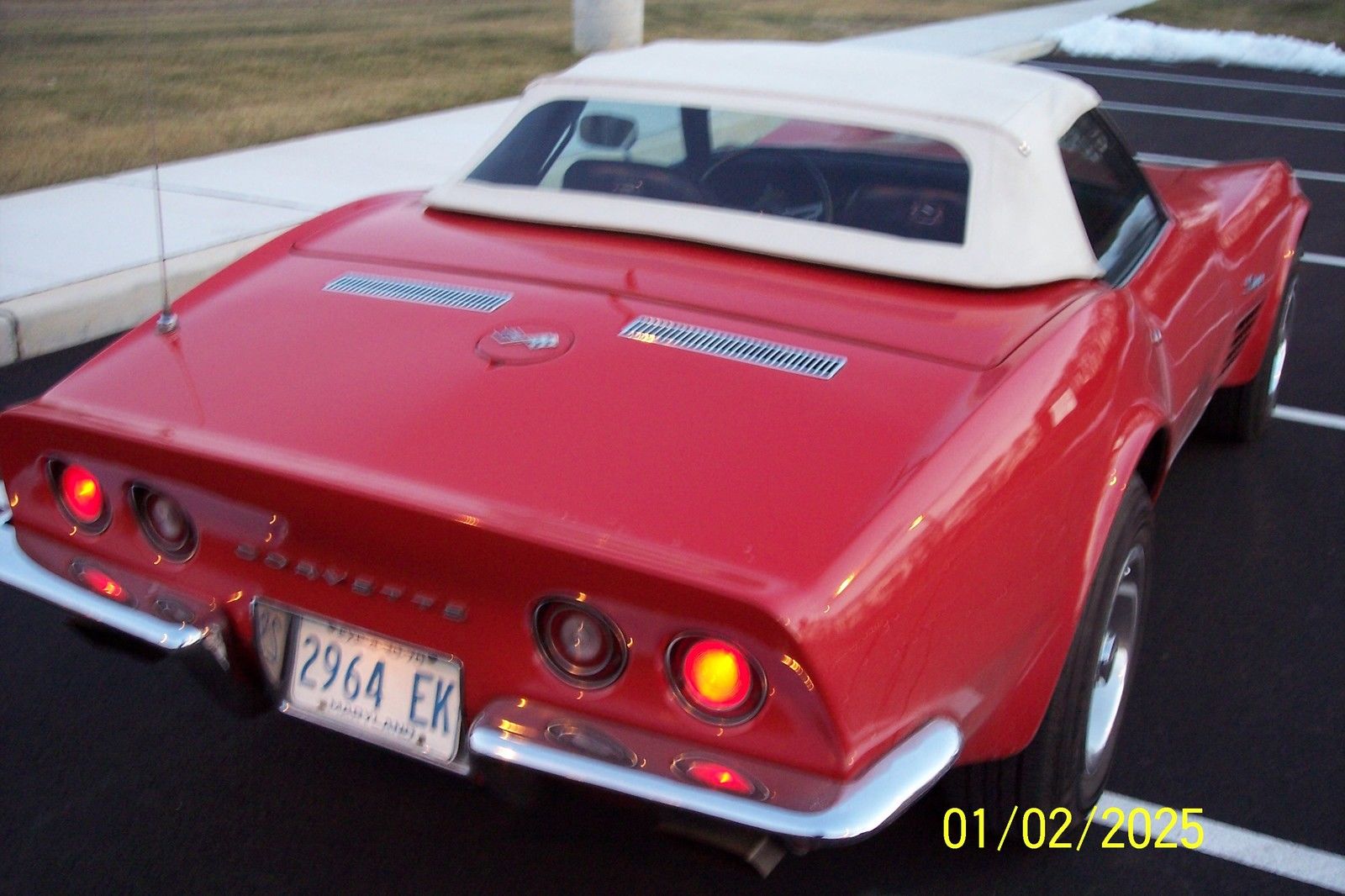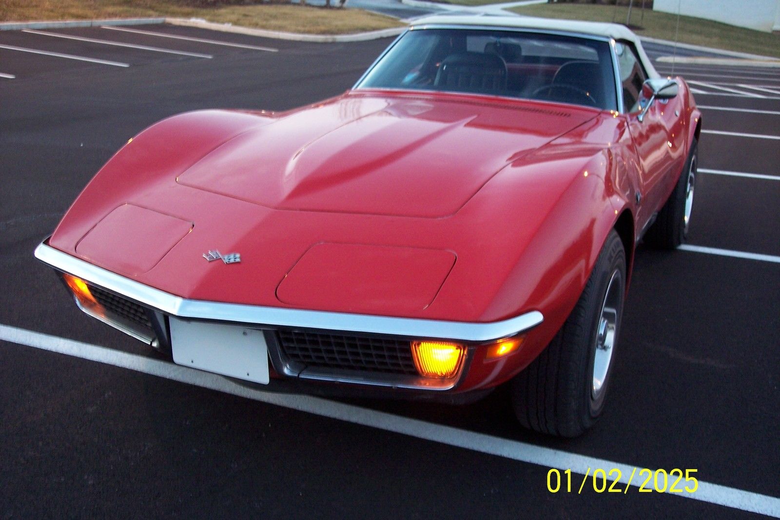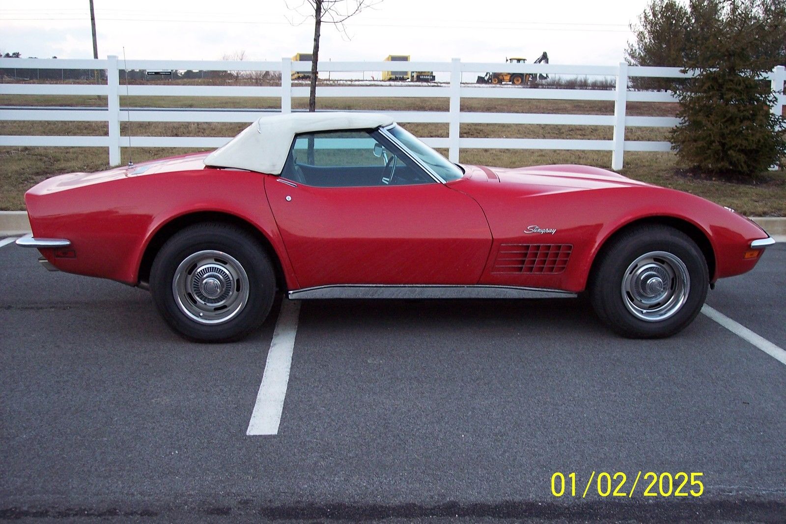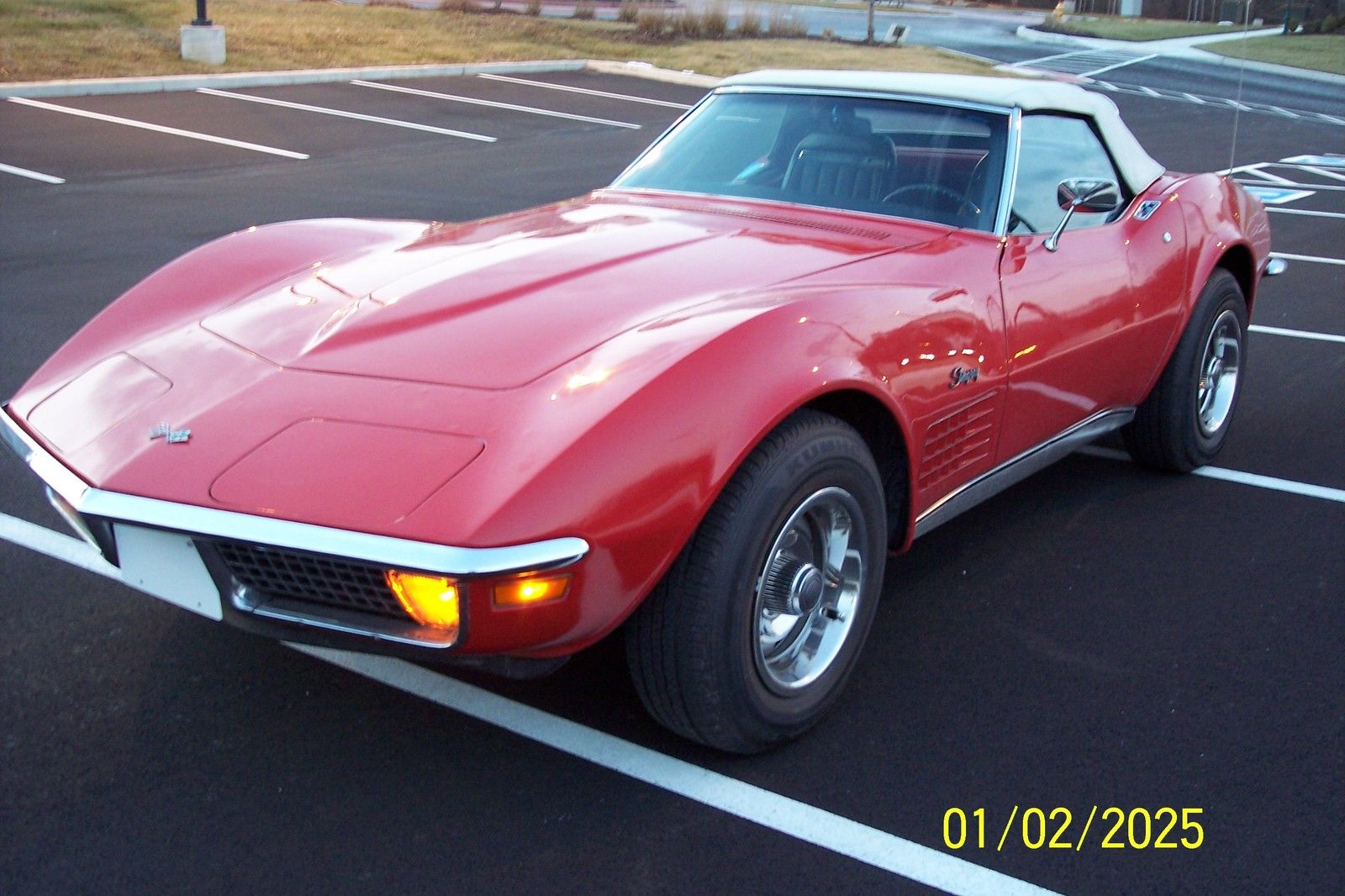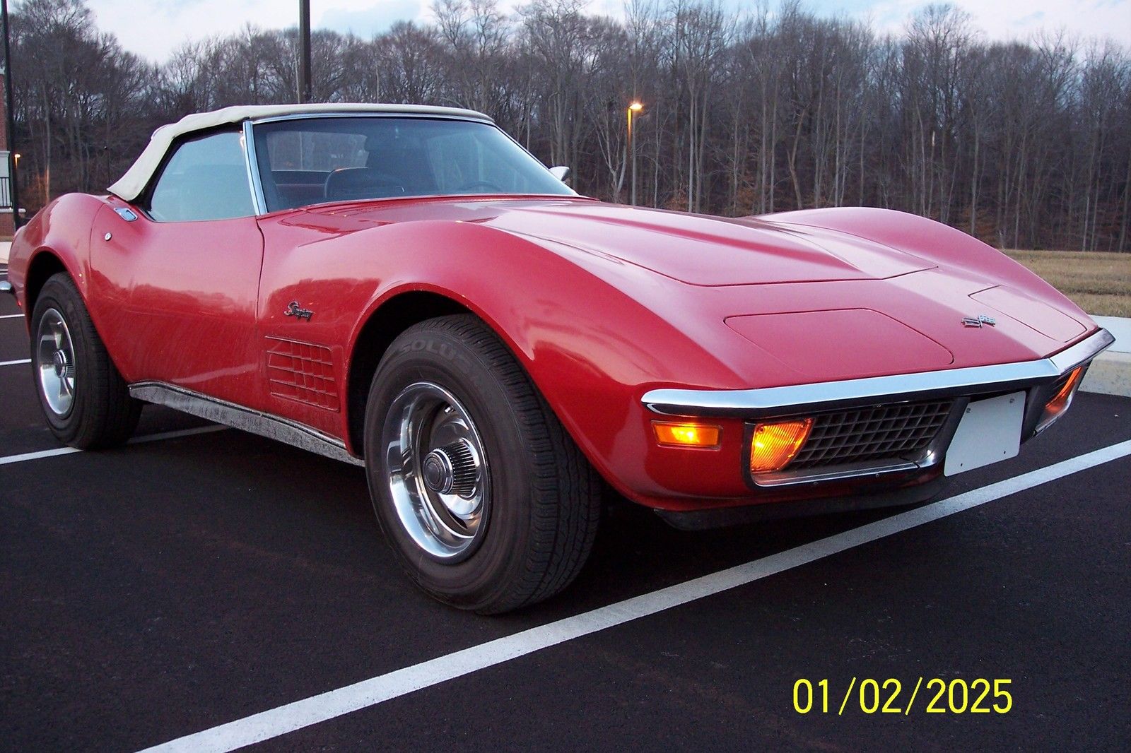 THE CAR HAS SOME DIRT AND ROAD DUST IN THESE PICTURES. GREAT DRIVING AND GREAT LOOKING STINGRAY. MAINTENANCE AND REPAIR INVOICES. AS FAR BACK AS 1996. INCLUDES ENGINE REBUILD AND PERFORMANCE UPGRADES. FRONT AND REAR SUSPENSION BRAKES REBUILT. STAINLESS STEEL EXHAUST. REBUILT REAR END 3:70 GEARS. HEAD LIGHT AND WIND SHIELD ACTUATORS AND VACUUM HOSE KIT. ONLY SEVERAL HUNDRED MILES ON 225/70-15 TIRES. OVER $25000 INVOICE AMOUNT. CORVETTE SPECIALTIES OF MARYLAND ELDERSBURGCORVETTE REPAIR AND RESTORATION GLEN BURNIEMARK SMALL MACHINE WESTMINSTERTHESE ARE THE PROFESSIONALSFRONT ENGINE PAD 1S100278 VO811CJL MATCHING BLOCK NUMBERSCOLOR CODE 989 TRIM CODE 400 POWER STEERING TILT WHEEL POWER BRAKES I INVITE YOU OR AN INSPECTOR TO SEE THIS CAR. TRUE MILEAGE UNKNOWN. CONTACT ME BEFORE YOU BID IF YOU HAVE 5 OR LESS EBAY FEED BACK. I RESERVE THE RIGHT TO CANCEL UNAUTHORIZED BIDS. SOME OF THE ENGINE PARTS INCLUDE. JBA SHORTY HEADERS STAINLESS ALLENS STAINLESS STAGE 2 EXHAUSTALUMINUM HEADS ALUMINUM WATER PUMPBE COOL ALUMINUM RADIATOR ELECTRONIC IGNITIONEDELBROCK ALUMINUM INTAKE MANIFOLDHOLLEY 670 STREET AVENGER CARBURETORI CAN SEND MORE PICS DRIVES AND LOOKS GREAT GARAGE KEPTCONSIDER THE LOW PRODUCTION OF 1971 CONVERTIBLE ONLY 7121 PRODUCEDCOMPARE TO 1968 -18630 PRODUCED 1969 - 16633 PRODUCEDCONSIDER THE 4 WHEEL WELL FLARES THAT FIRST APPEARED IN 1970 AND ENDED IN 1982. THESE HELP TO PREVENT STONES AND DEBRIS ON BODY AND PAINT. THIS CAR IS A GREAT DRIVER. RIDAY AND SATURDAY CRUISE NIGHT. IT IS A 44 YEAR OLD CAR. LDER PAINT. SOME EXTRA PARTS TO BE INCLUDED. IT WAS FOUND IN THE GARAGE OF ROD SABOURY. DO A GOOGLE SEARCH ABOUT THIS FAMOUS CORVETTE BUILDER AND RACER. THESE PHOTOS WERE TAKEN AFTER DRIVING THE CAR AND IT GOT DIRTY. IT CLEANS UP GREAT. SPRING TIME AROUND THE CORNER.